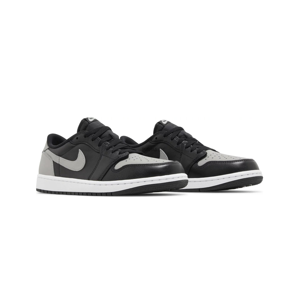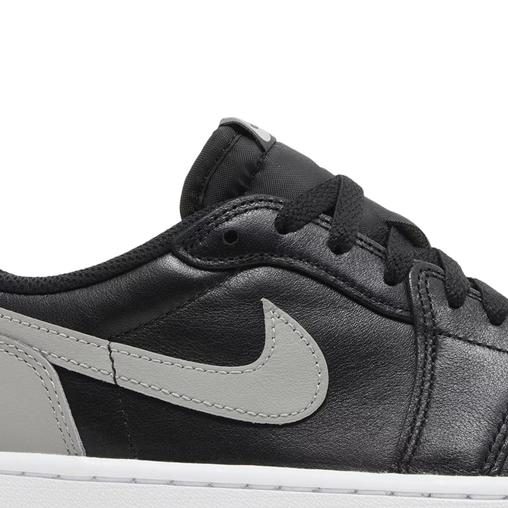 Crafted with a premium leather upper, the Air Jordan 1 Low OG 'Shadow' features a clean “Black” and “Shadow Grey” color blocking, making it a versatile staple in any sneaker rotation. The black overlays cover the toe, eyestays, and heel, seamlessly contrasting with the grey underlays on the toe box, side panels, and ankle collar. This elegant colorway is accentuated by a black Nike Swoosh and the classic “Nike Air” branding on the tongue, reinforcing its OG status. True to the original silhouette, the Wings logo is prominently placed on the heel, while a crisp white midsole and grey outsole add a subtle, balanced finish. With its roots in the iconic Air Jordan 1 High 'Shadow' from 1985, this low-top rendition brings the heritage forward with renewed comfort and modern wearability.