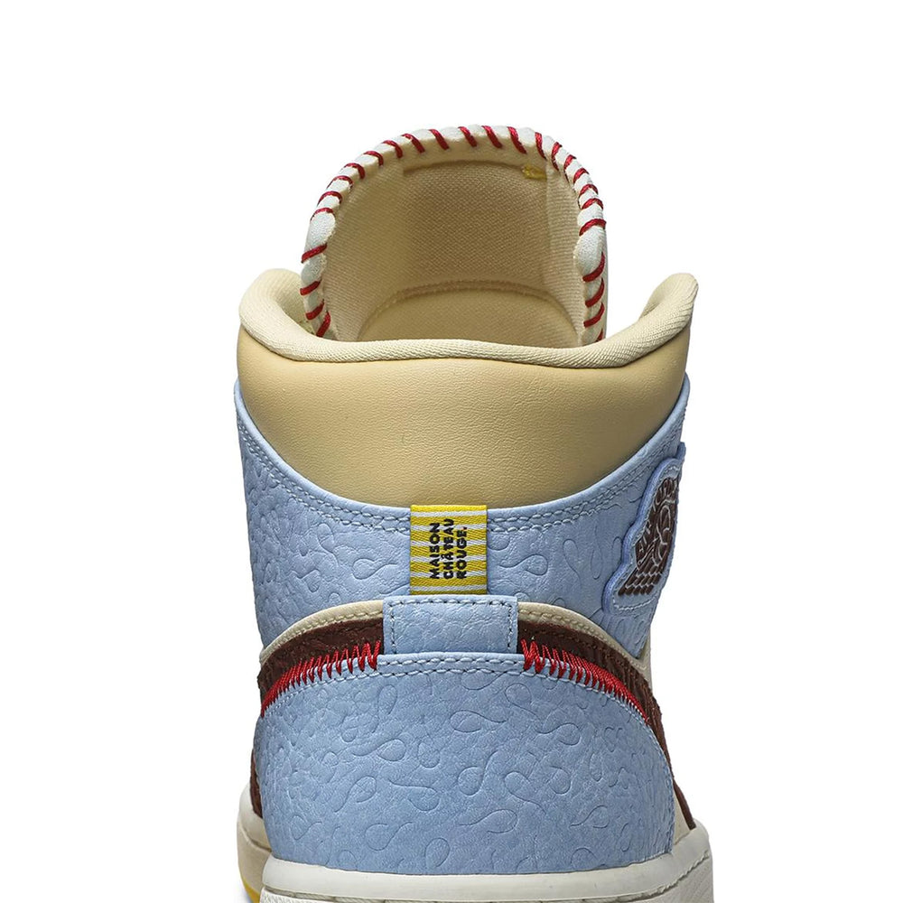 Crafted with a combination of premium materials, the Air Jordan 1 Mid SE 'Fearless Maison Chateau Rouge' features a luxurious mix of leather and intricate stitch detailing, reminiscent of traditional African craftsmanship. The warm "Cider" and "Gold" tones create a vibrant contrast against the clean white leather base, while geometric patterns and embossed overlays showcase the meticulous artistry of Maison Chateau Rouge. The sneaker is finished with a unique lace tag featuring the Maison Chateau Rouge logo, reinforcing its collaborative nature. The tongue features "Maison Chateau Rouge" branding, adding a layer of exclusivity to this already bold design. Celebrating culture, craftsmanship, and individuality, this Air Jordan 1 Mid SE stands as a symbol of unity and fearless creativity.