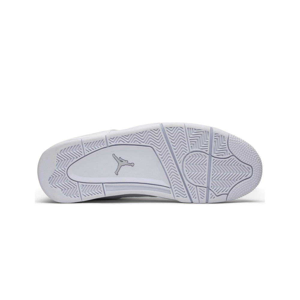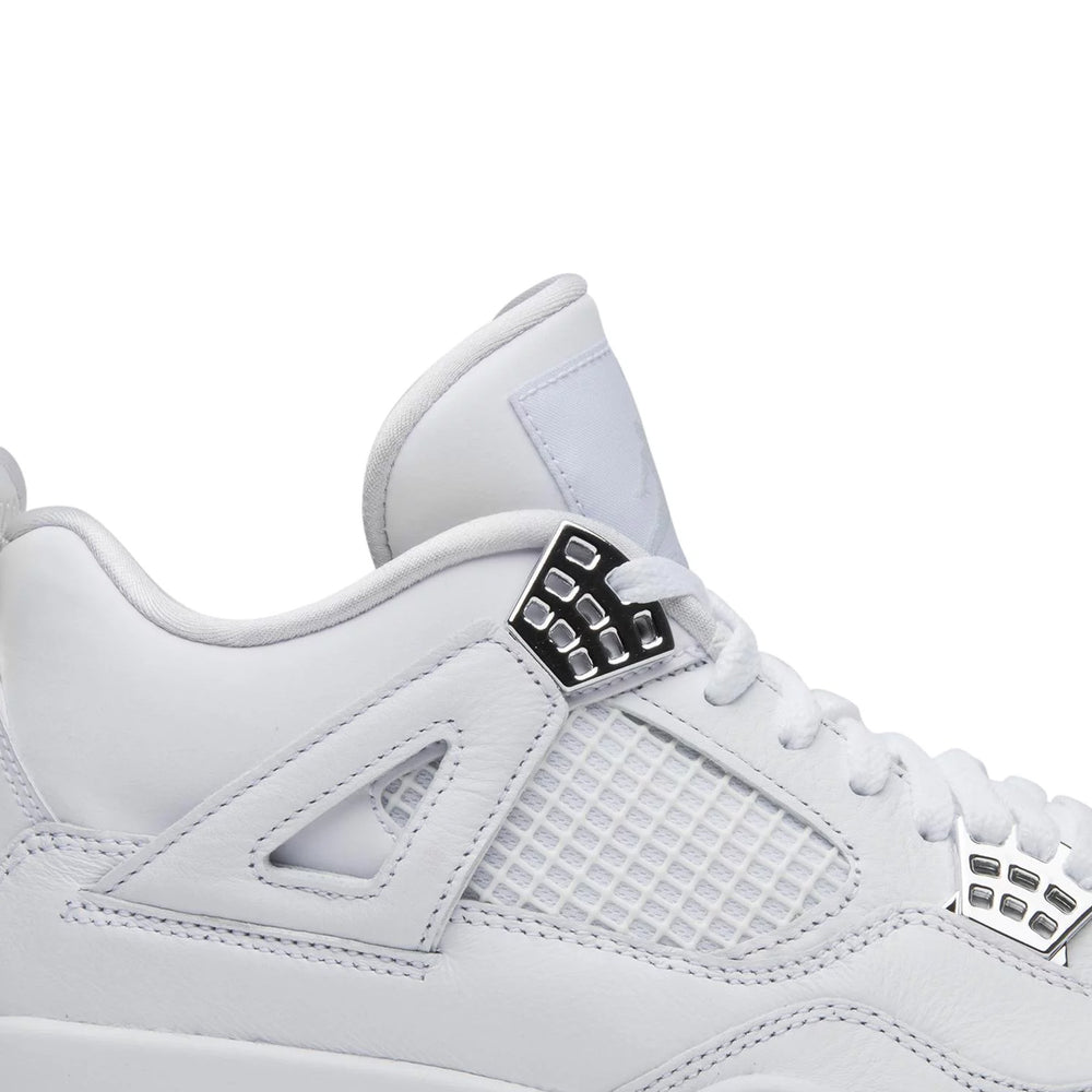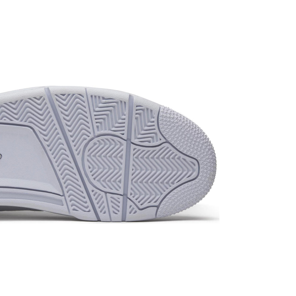 Distinguished by its clean lines and premium materials, the Air Jordan 4 Retro 'Pure Money' boasts a sleek white leather construction throughout its upper, complemented by subtle silver accents on the lace loops, mesh inserts, and heel tab. The classic Air Jordan wing embellishment on the lateral side further enhances its iconic appeal, while the visible Air-Sole unit encapsulated within the midsole delivers responsive cushioning and support. Ideal for collectors and enthusiasts alike, this rendition pays homage to its heritage while embracing modern design sensibilities.