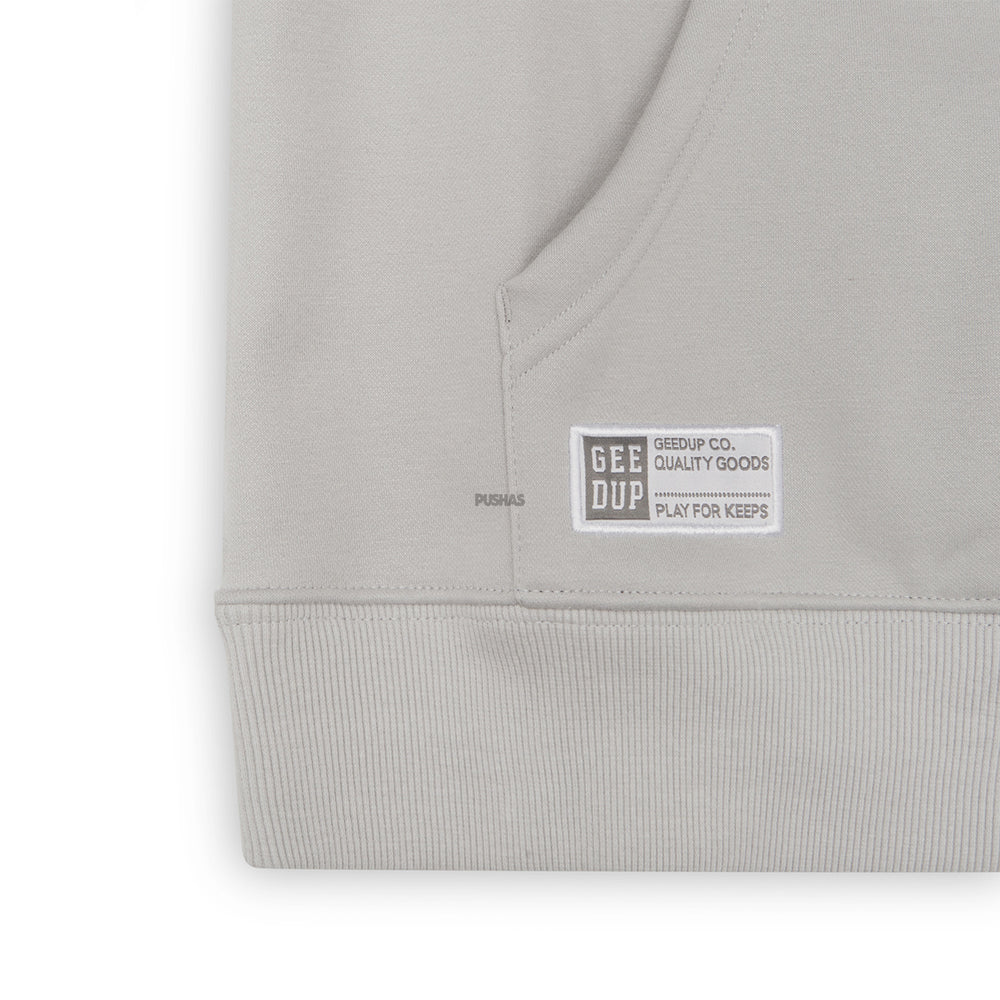 Designed to elevate casual wear to new heights, the Geedup Handstyle Hoodie in 'Grey White' boasts a versatile color palette that effortlessly complements any wardrobe. Its relaxed fit and ribbed cuffs provide superior comfort, making it an ideal choice for both lounging at home and stepping out in style. The hoodie's attention to detail extends to its adjustable drawstring hood and kangaroo pocket, enhancing both functionality and aesthetic appeal.
