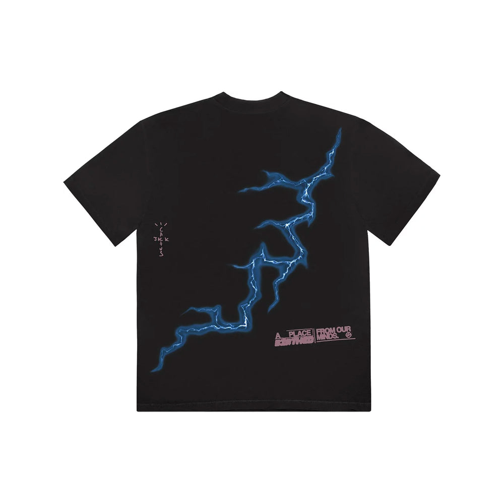 Crafted from high-quality cotton, the Travis Scott Cactus Jack For Fragment Danger Tee showcases a washed black finish, giving it a vintage, worn-in look. The front of the tee features Fragment's iconic lightning bolt logo in a subtle print, while the back is adorned with a large, bold Cactus Jack graphic, lending a striking contrast. The tee's oversized fit aligns with the modern streetwear trend, providing comfort and style. Co-branding is emphasized throughout, reflecting both Scott's rebellious aesthetic and Fragment's simplistic yet impactful design approach. Released as part of a limited 2021 collaboration, this tee has become a staple for fans of both labels.