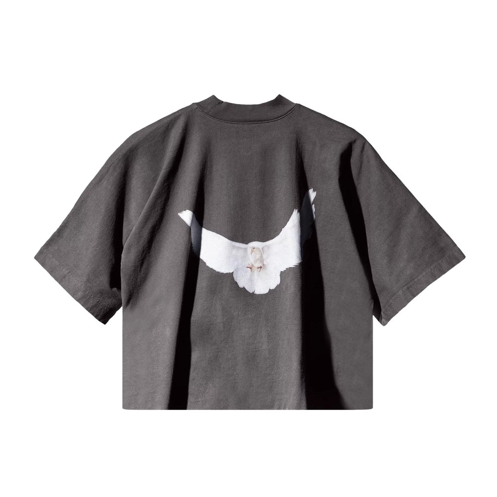 The Yeezy Gap Engineered by Balenciaga Dove No Seam Tee is crafted from high-quality cotton, ensuring a comfortable and durable fit. Its dark grey hue lends the piece a versatile, streetwear-ready vibe, making it ideal for everyday wear or as part of a more curated outfit. The no-seam construction emphasizes the minimalist approach that both Yeezy and Balenciaga are known for, ensuring a sleek, uninterrupted finish. A subtle "Dove" graphic sits at the chest, symbolizing peace and tying into Kanye West’s broader thematic influences throughout his design career. The collaboration taps into the core aesthetic of each brand—minimalism meets innovation—resulting in a standout, collector-worthy piece.