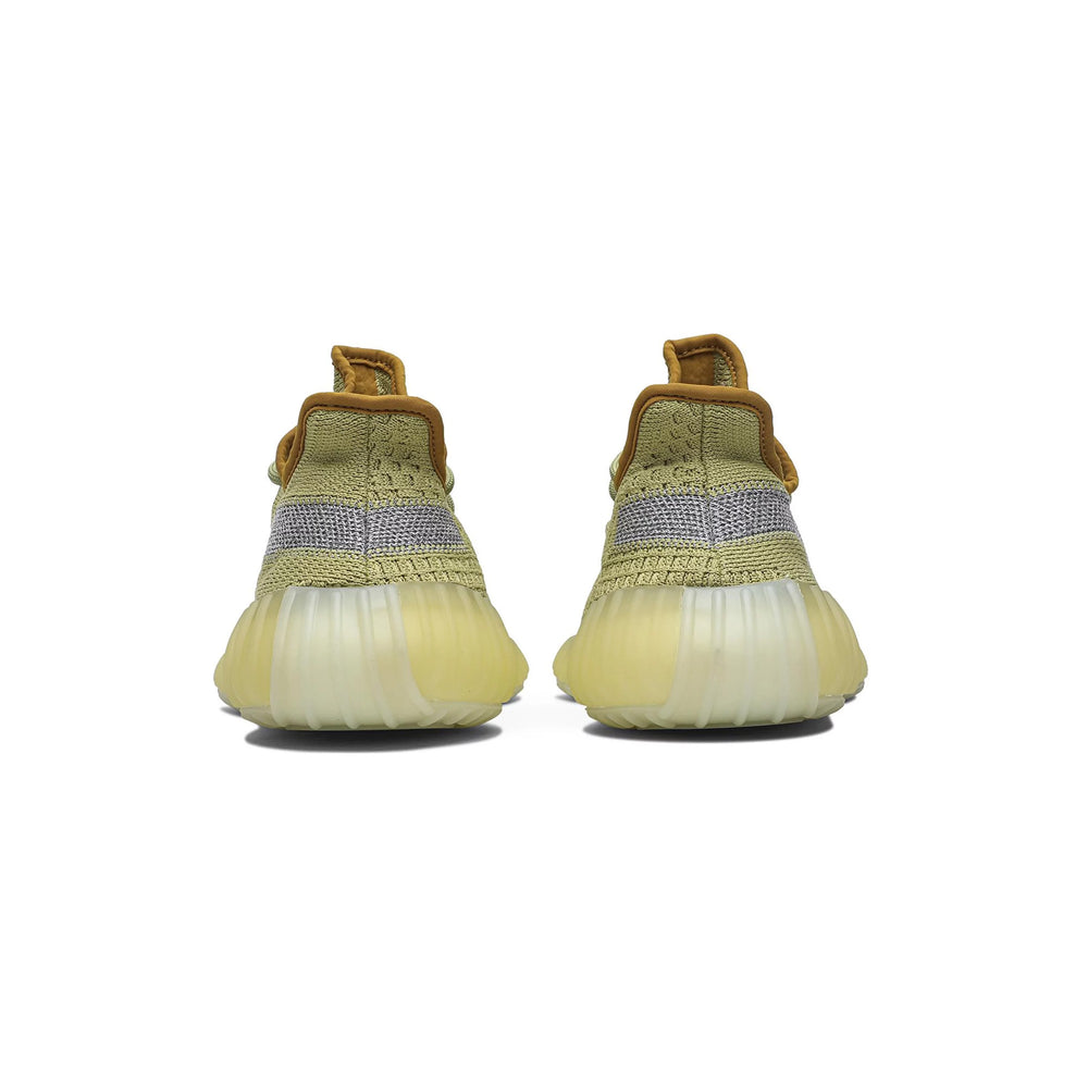 The Yeezy Boost 350 V2 'Marsh' features a Primeknit upper in a muted mustard-yellow hue, offering both breathability and a snug, adaptive fit. The design is accented by a contrasting brown stripe running along the lateral side, adding a subtle touch of depth to the overall aesthetic. The sneaker’s full-length Boost midsole, encapsulated in a semi-translucent rubber shell, ensures superior cushioning and responsiveness, making it ideal for both style and comfort. A light gum outsole completes the look, enhancing traction while contributing to the earthy tones of the shoe. The pull tab at the heel is omitted in this iteration, providing a streamlined silhouette.