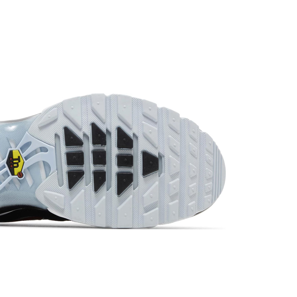 The 'Swoosh Pack Blue Tint' stands out with its striking 'Blue Tint' mesh upper, delivering a cool, refreshing vibe that's perfect for any season. The signature wavy overlays, a hallmark of the Air Max Plus, are rendered in a subtle white, creating a clean contrast against the vibrant blue base. The iconic Swooshes, prominently featured in a reflective silver, add a touch of sophistication and visibility. The sneaker's midsole is equipped with the revolutionary Tuned Air technology, providing unparalleled cushioning and support for all-day comfort. The rubber outsole, with its signature waffle pattern, ensures excellent traction and durability, making this sneaker as functional as it is stylish.