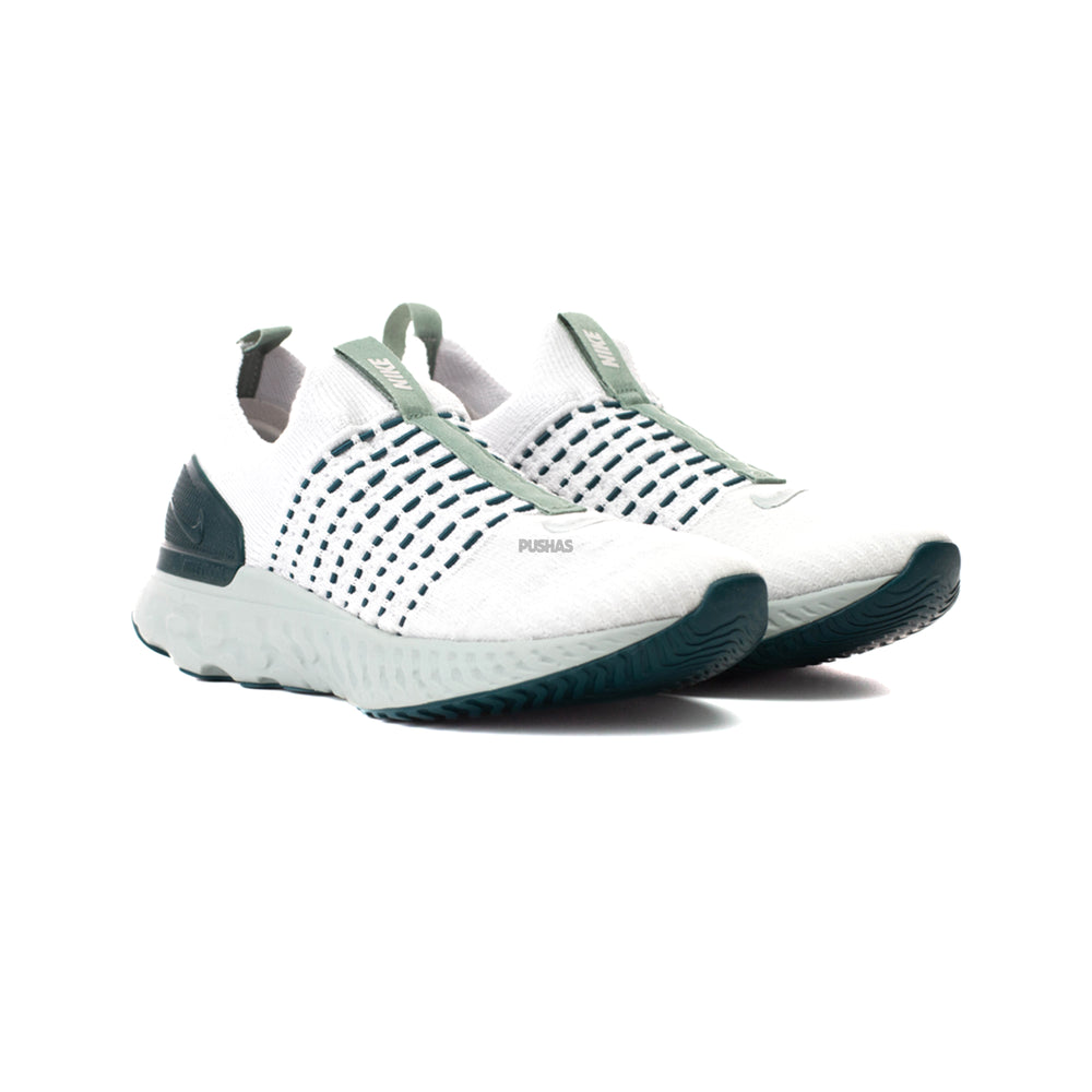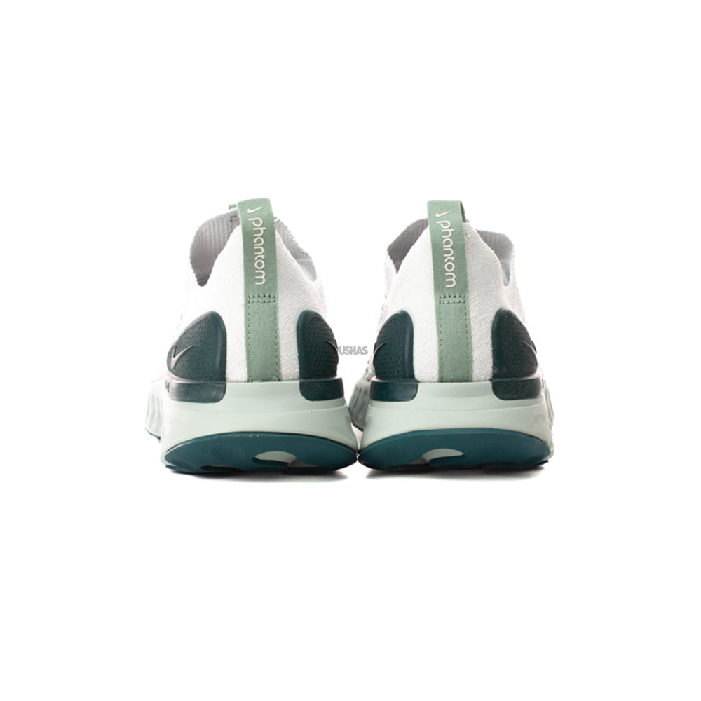 The Nike React Phantom 'Platinum Tint Dark Teal' features a lightweight and breathable Flyknit upper, which conforms to the shape of your foot for a snug, sock-like fit. This seamless construction reduces irritation and enhances ventilation, keeping your feet cool and comfortable mile after mile. The 'Platinum Tint' and 'Dark Teal' colorway exudes sophistication, making it a standout choice for both performance and fashion.