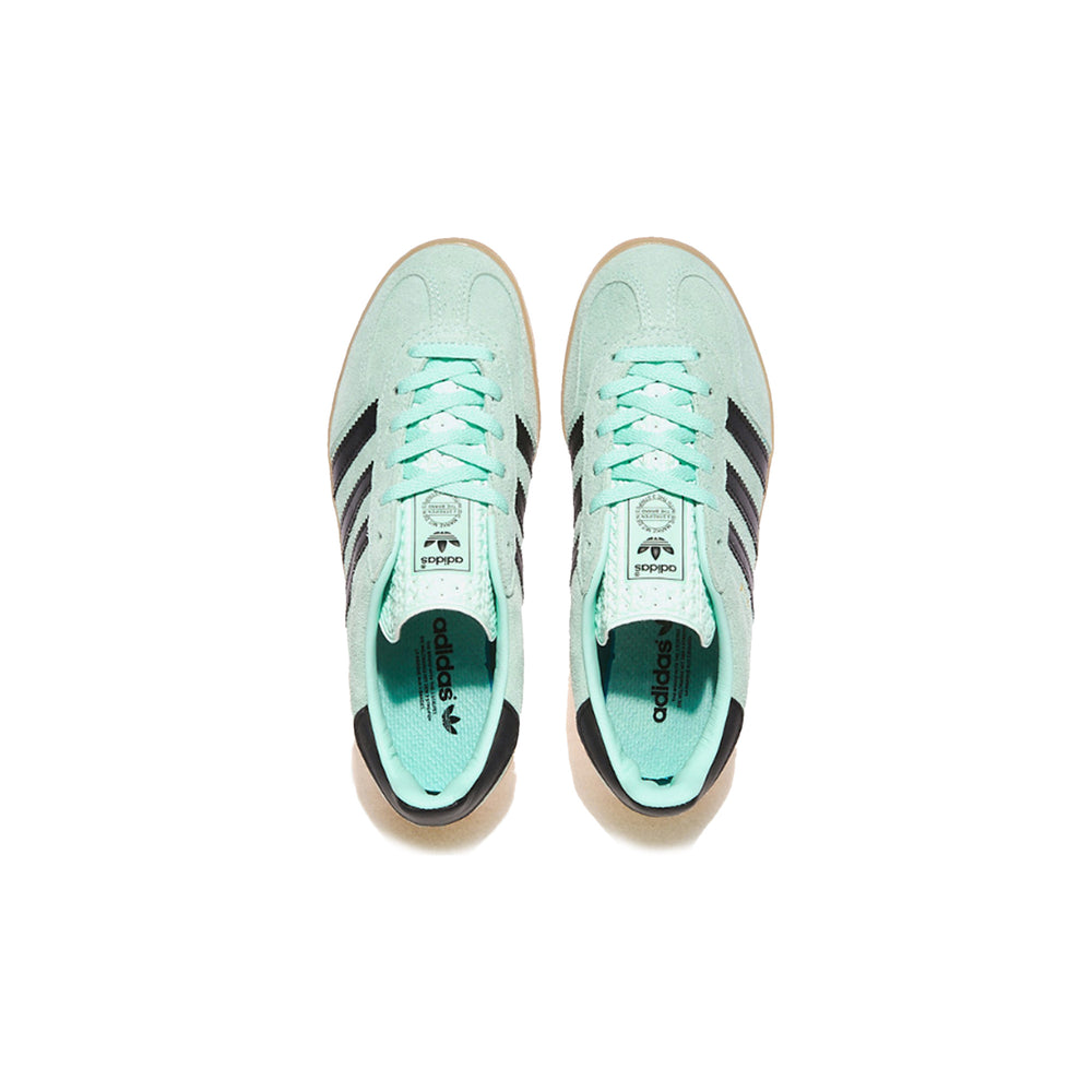 The Adidas Gazelle Indoor Shoes in 'Turquoise' epitomize the classic appeal of this iconic silhouette, reimagined with a fresh and vibrant colorway. Rooted in Adidas's rich heritage, the Gazelle continues to offer both style and comfort, making it a staple in both athletic and casual wardrobes.