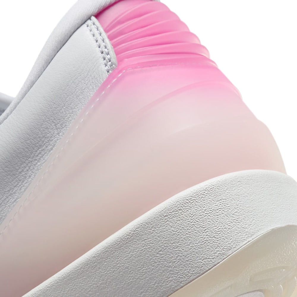 The Air Jordan 2 Retro Low 'Cherry Blossom' (2024) celebrates the beauty of nature, merging Japanese aesthetics with Jordan Brand's iconic design language. Drawing inspiration from the delicate cherry blossom, this release offers a refined yet bold iteration of the Air Jordan 2 silhouette, known for its premium craftsmanship and attention to detail. Overview The Air Jordan 2 Retro Low 'Cherry Blossom' features a smooth white leather base, highlighted by soft pink and purple accents that evoke the elegance of the cherry blossom flowers in full bloom. The upper showcases contrasting "Sail" and "Vivid Pink" overlays, while the midsole is dressed in a classic white, ensuring a balanced yet striking look. Subtle floral embroidery on the heel and tongue tag further reinforces the theme. To complete the design, a translucent pink outsole adds a modern touch while reflecting the light, much like the fleeting petals of the cherry blossom. The sneaker seamlessly blends Jordan's timeless style with nature-inspired elements, creating a harmonious aesthetic that pays homage to the beauty of spring. Key Highlights • Cherry Blossom-Inspired Design: The delicate pink and purple accents, along with floral embroidery, evoke the beauty and fleeting nature of cherry blossoms. • Premium Leather and Suede Construction: A high-quality white leather base is paired with soft suede overlays for a luxurious feel and durability. • Iconic Air Jordan 2 Silhouette: Retains the signature shape and craftsmanship of the Air Jordan 2, offering a low-top variation that's both stylish and comfortable.
