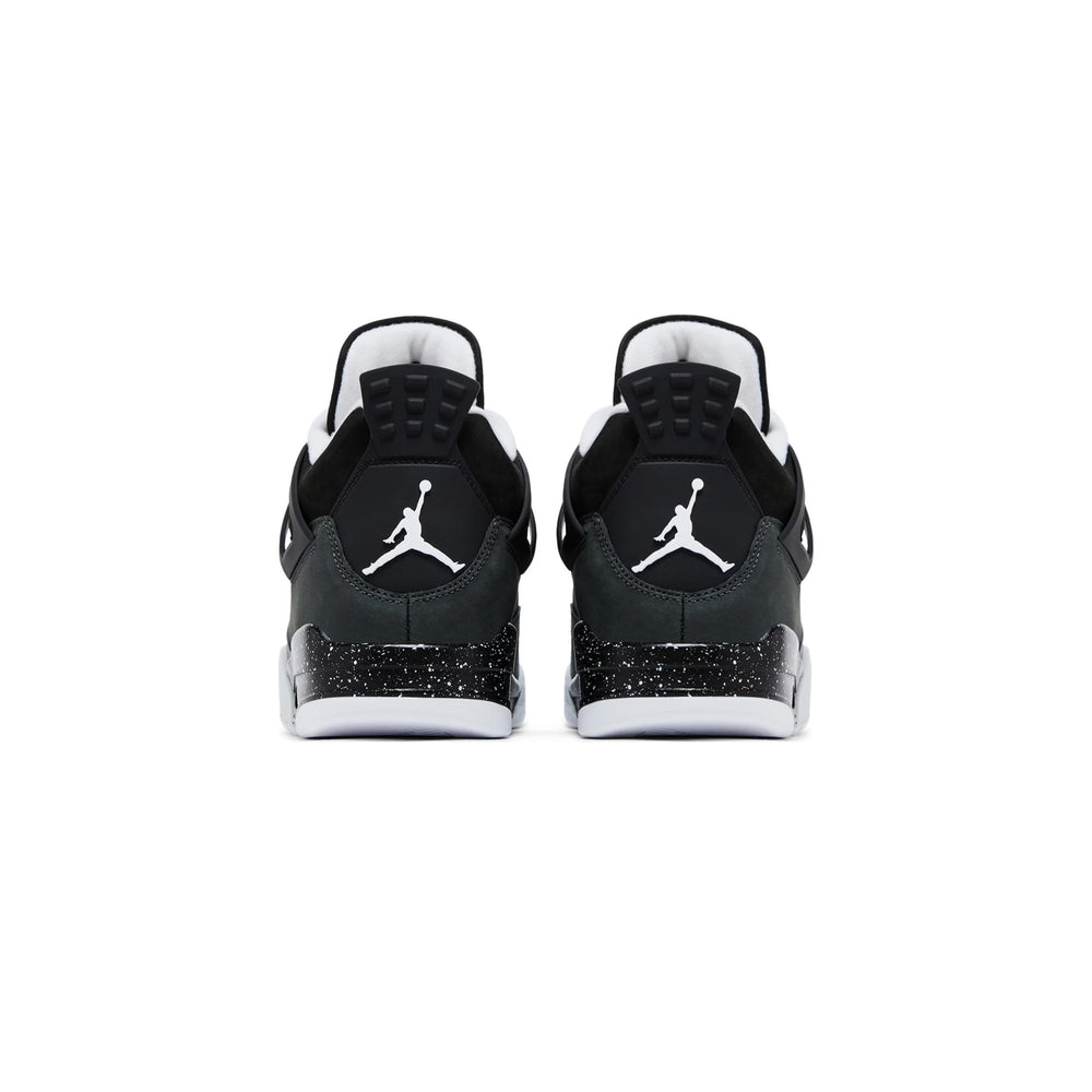The Air Jordan 4 Retro 'Fear' features a sophisticated blend of dark grey, black, and white hues, giving the sneaker an edgy and versatile appeal. The upper is crafted from premium suede, offering a luxurious texture that balances both style and durability. Black and dark grey hues dominate the upper, with subtle white speckling on the midsole and heel, creating a striking visual contrast. Mesh netting on the quarter panels and tongue adds breathable functionality, while classic Air Jordan detailing, such as the visible Air unit in the heel, maintains the heritage appeal. The interior showcases a plush black lining, enhancing comfort while providing a refined look. With a tribute to Michael Jordan’s fearless mindset, this release reaffirms the cultural significance of the Air Jordan 4, resonating with both collectors and casual wearers alike.