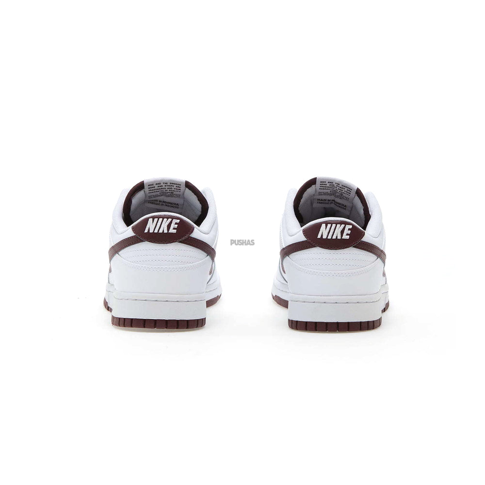 Crafted with premium materials, the Nike Dunk Low Retro 'White Night Maroon' (2023) features a leather upper for durability and a luxurious feel. The iconic Nike Swoosh on the sides and the classic Dunk branding on the tongue and heel tab add signature details that highlight the sneaker's heritage and authenticity.