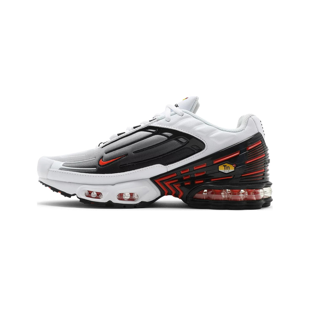 The Nike Air Max Plus 3 'White Black Team Orange' (2020) represents a sophisticated blend of modern aesthetics and classic Nike innovation. This iteration of the iconic Air Max Plus line continues the legacy of superior comfort and striking design that has made the series a staple among sneaker enthusiasts since its inception in 1998.