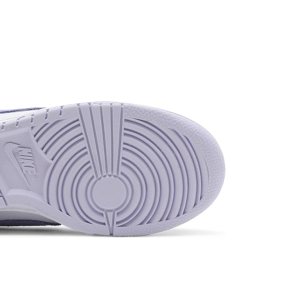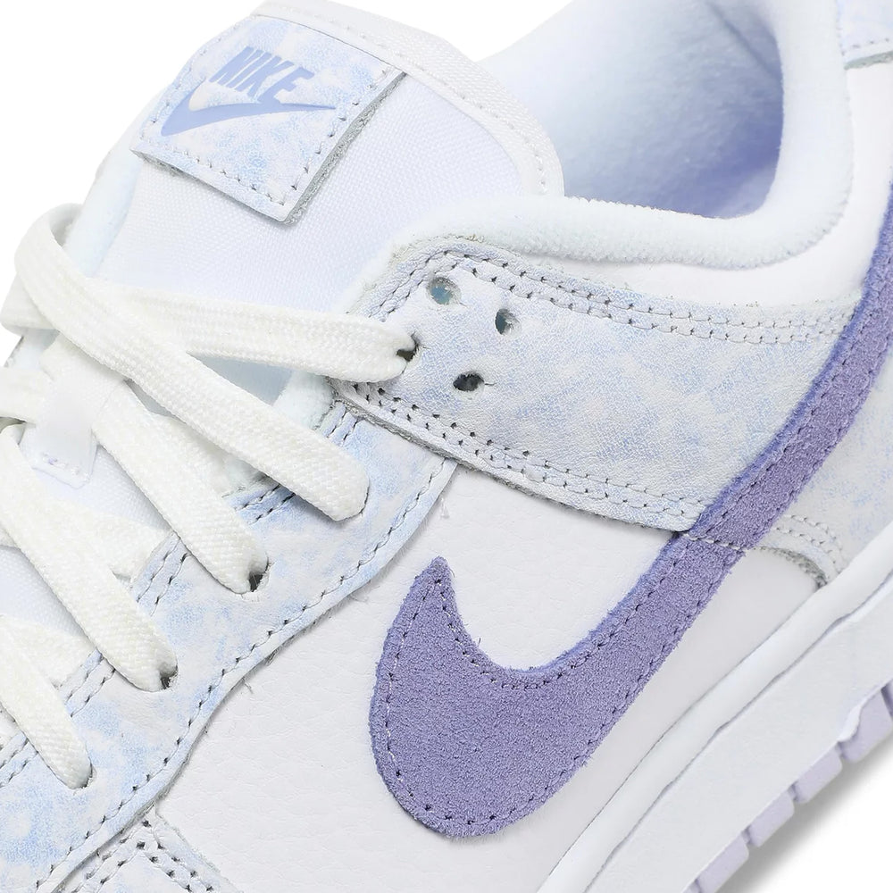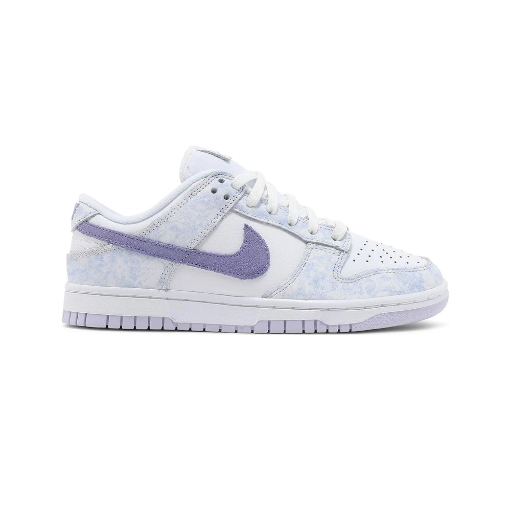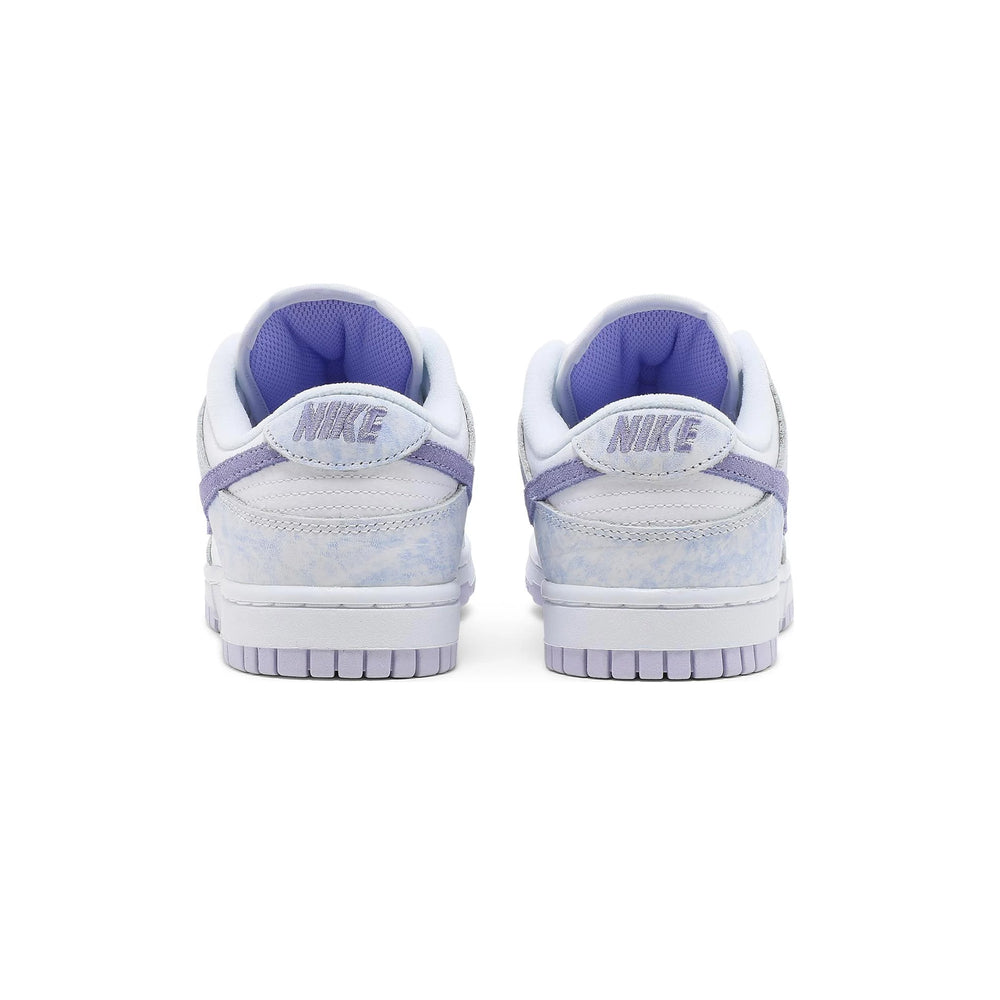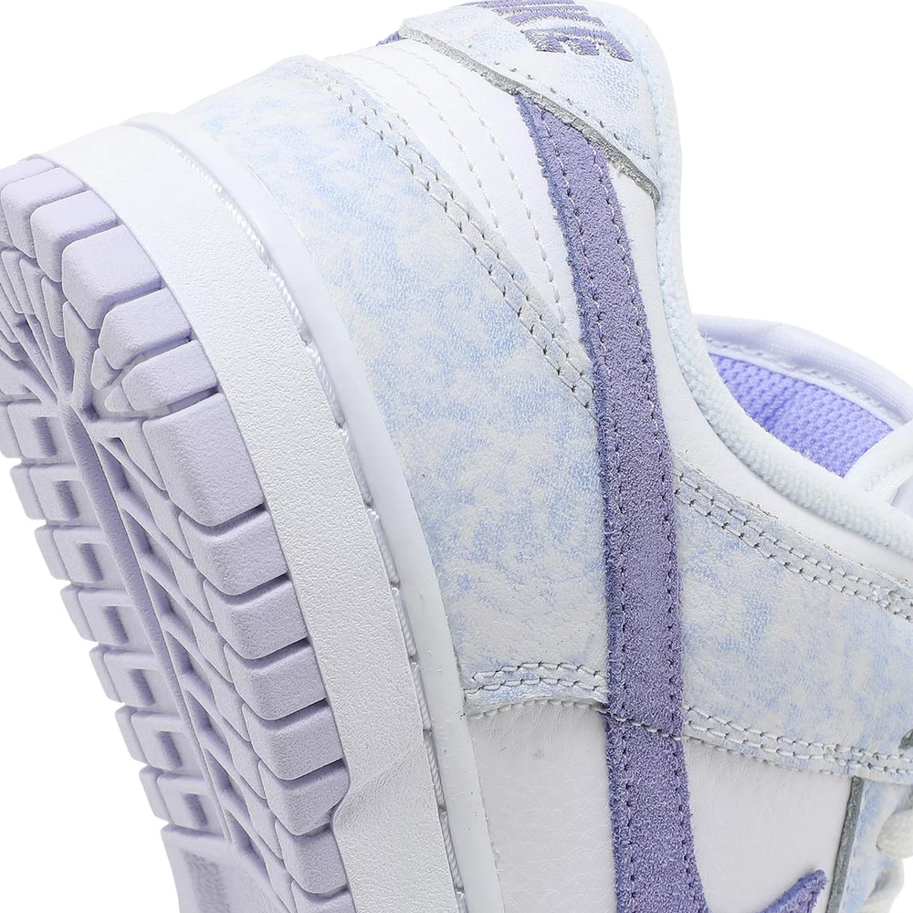 Unique 'Purple Pulse' Colorway: The soft lavender overlays with a watercolor effect provide a standout aesthetic that distinguishes this model from other Dunk Low releases.