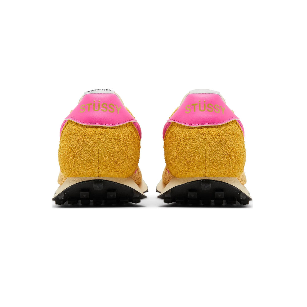 The 'Sanded Gold' edition of the Nike LD-1000 SP features a sleek design with a sophisticated color palette. Its upper showcases a premium suede construction in a soft "Sanded Gold" hue, providing a rich and refined look. The sneaker's silhouette is complemented by contrasting black leather Swooshes and a white midsole that ensures a striking visual balance. Stussy's signature branding is subtly embossed on the heel and tongue, adding an exclusive touch to the design. Notable for its blend of luxury and functionality, this model includes a cushioned insole and a durable rubber outsole for enhanced comfort and grip. The design reflects a vintage aesthetic with contemporary enhancements, ideal for those seeking a unique and stylish footwear option.