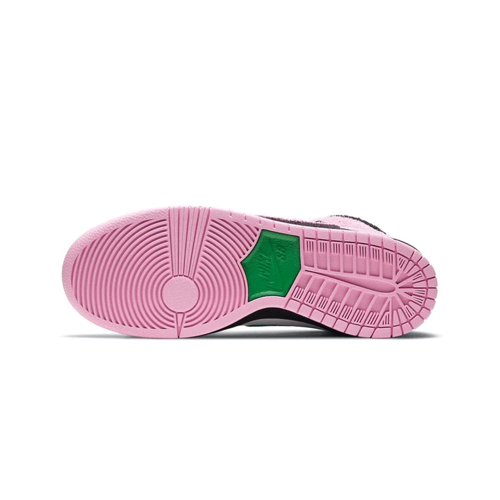 The 'Invert Celtics' Dunk High stands out with its dual-personality design. One side showcases the traditional green and white leather synonymous with the Boston Celtics, reflecting the team's storied legacy. Contrastingly, the other side flips expectations with an eye-catching combination of vibrant pink and black suede. This unique juxtaposition not only sets it apart visually but also emphasizes Nike's commitment to innovation and creativity. The high-top silhouette provides ample ankle support, while the perforated toe box ensures breathability. Nike's attention to detail is evident in every stitch, from the padded collar to the durable rubber outsole, designed to withstand the rigors of skateboarding while offering exceptional grip.