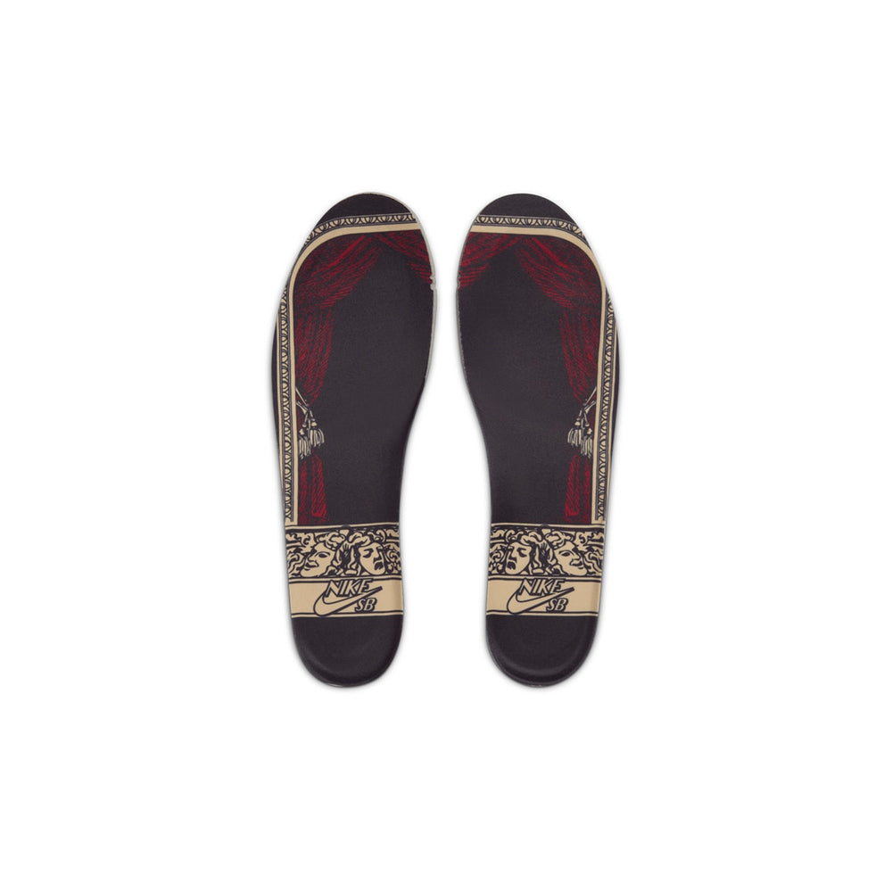 The Nike SB Dunk Low 'City of Cinema' features a base crafted from luxurious black suede, symbolizing the elegance and timeless appeal of Paris. The sneaker is elevated with a striking array of color accents, including deep red swooshes and a contrasting white midsole, mimicking the bright lights and contrasting hues of cinema marquees. The laces add another layer of depth with a blend of black and red, while the translucent outsole enhances the shoe's overall visual impact. Notable details such as film-reel-inspired designs on the insoles and subtle nods to French cinema throughout the silhouette bring together a captivating blend of art and streetwear.