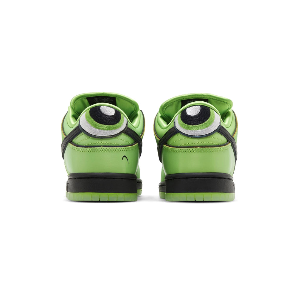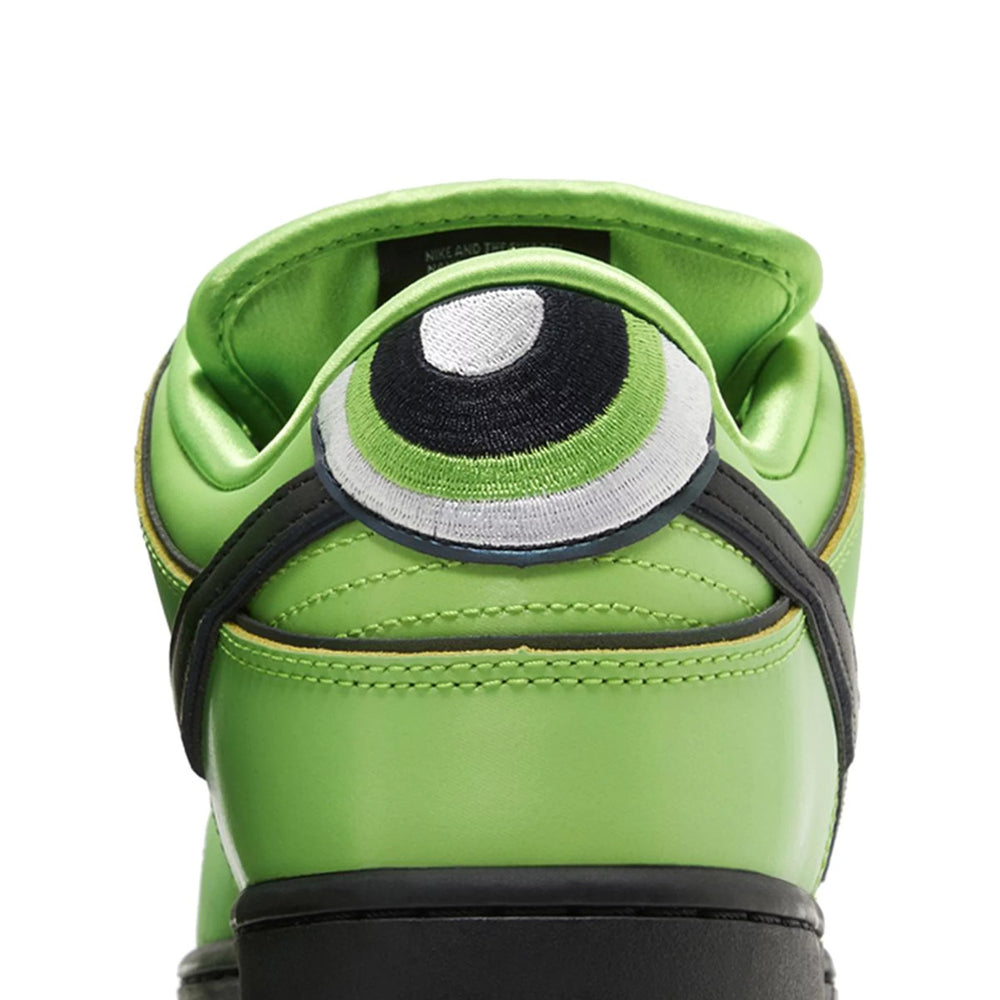 What sets the Nike SB Dunk Low 'The Powerpuff Girls Buttercup' apart is its attention to detail. The sneaker features a custom tongue tag inspired by the character, adding an extra layer of uniqueness to this limited-edition release. The Nike Swoosh on the sides and the embroidered Powerpuff Girls logo on the heel complete the homage to the beloved animated series.
