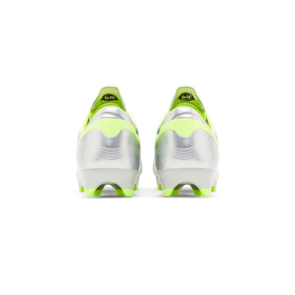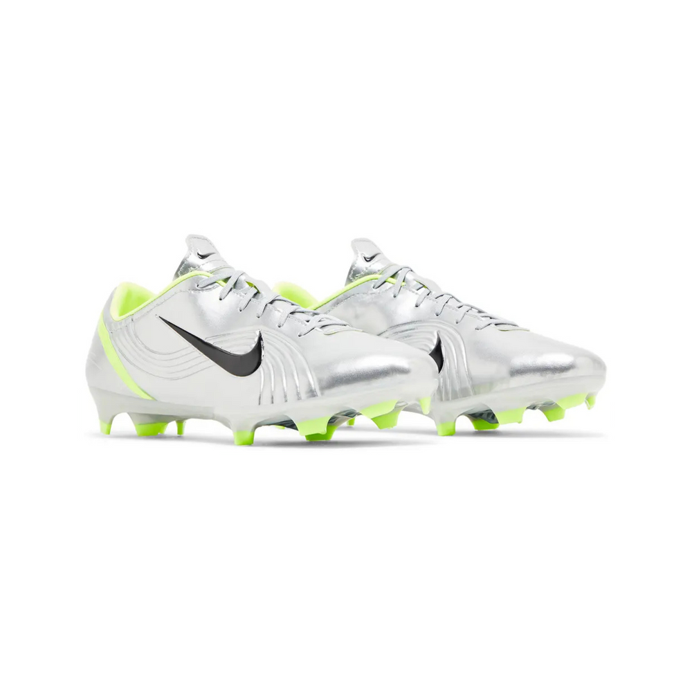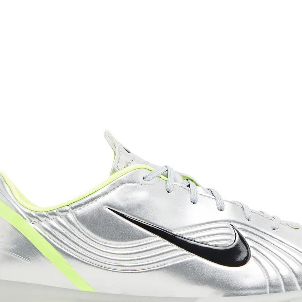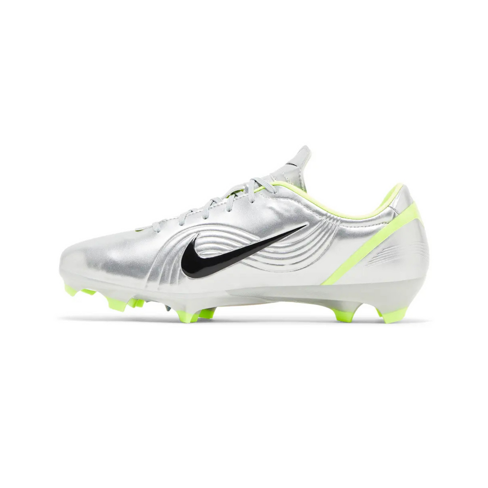 The 'Chrome Lime' colorway captivates with its metallic chrome upper, reflecting a sleek and modern vibe, while vibrant lime accents add an energetic contrast. Designed for optimal performance on firm-ground surfaces, the cleat features a lightweight Vaporposite+ upper, ensuring enhanced touch and control. The Flyknit collar wraps around the ankle for a seamless, sock-like fit, while the specialized soleplate is engineered for explosive acceleration and multidirectional traction. With its bold design and unparalleled functionality, the Nike Zoom Mercurial Vapor 1 RGN SE FG 'Chrome Lime' is built to deliver a statement both on and off the field.