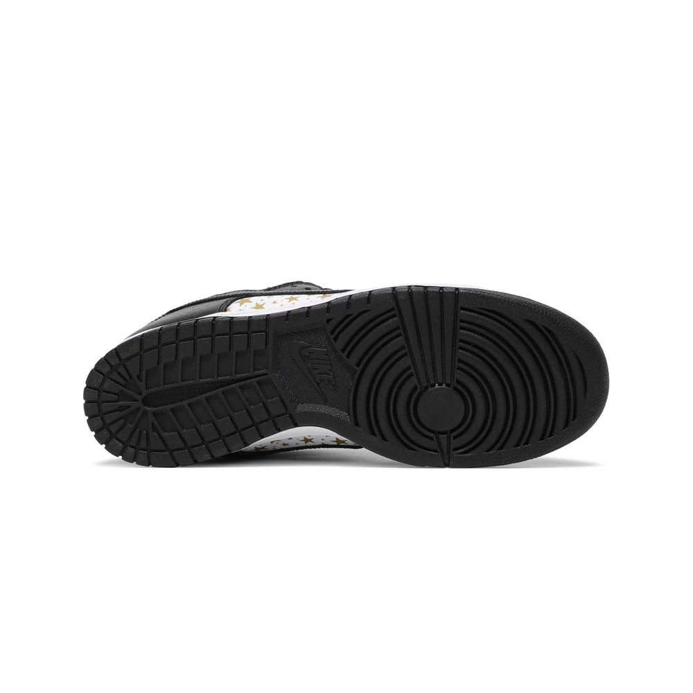 The Nike SB Dunk Low 'Supreme Stars Black' (2021) stands as a hallmark of the illustrious collaboration between Nike SB and Supreme, merging streetwear prestige with skateboarding heritage. This exclusive sneaker, launched in March 2021, has captivated enthusiasts with its premium materials and striking design, echoing the grandeur of the early 2000s Supreme Dunk releases.