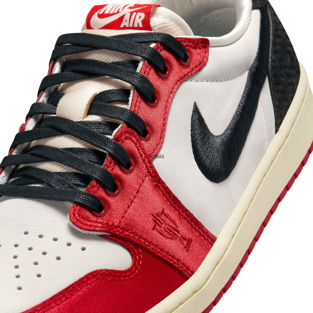 Introducing the Air Jordan 1 Low OG x Trophy Room 'Sail/Black/Varsity Red' (2024), a remarkable collaboration that fuses the timeless Air Jordan 1 silhouette with the distinctive touch of Trophy Room, the renowned sneaker boutique. Released in 2024, this sneaker is a true collector's gem, embodying both heritage and contemporary design.