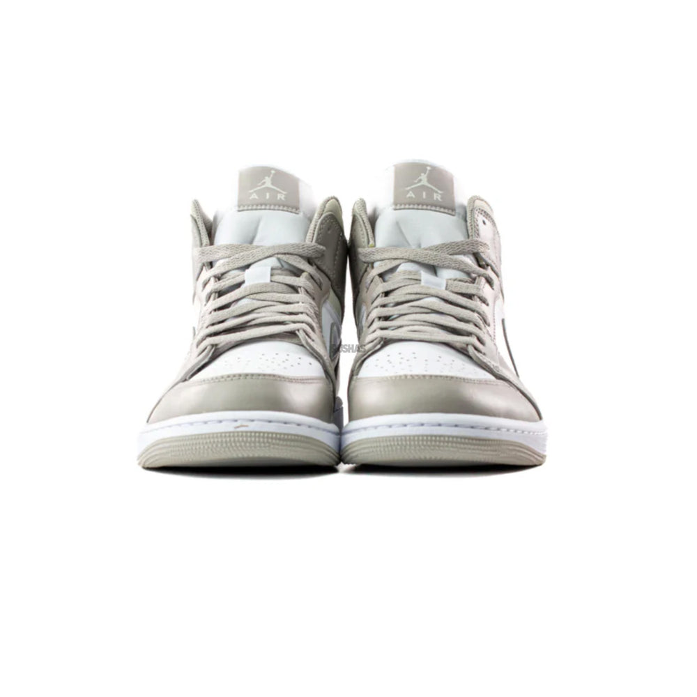 Shop the Air Jordan 1 Mid 'Linen' (2021). It is undeniable that the Jordan 1 Mid Linen is a great Mid colourway as it features a white leather upper with College Grey overlays and Swooshes. At the collar, hits of linen add a slight contrast. From there, matching woven tongue labels and soles complete the design. The subtle pair will match every fit you have in mind.