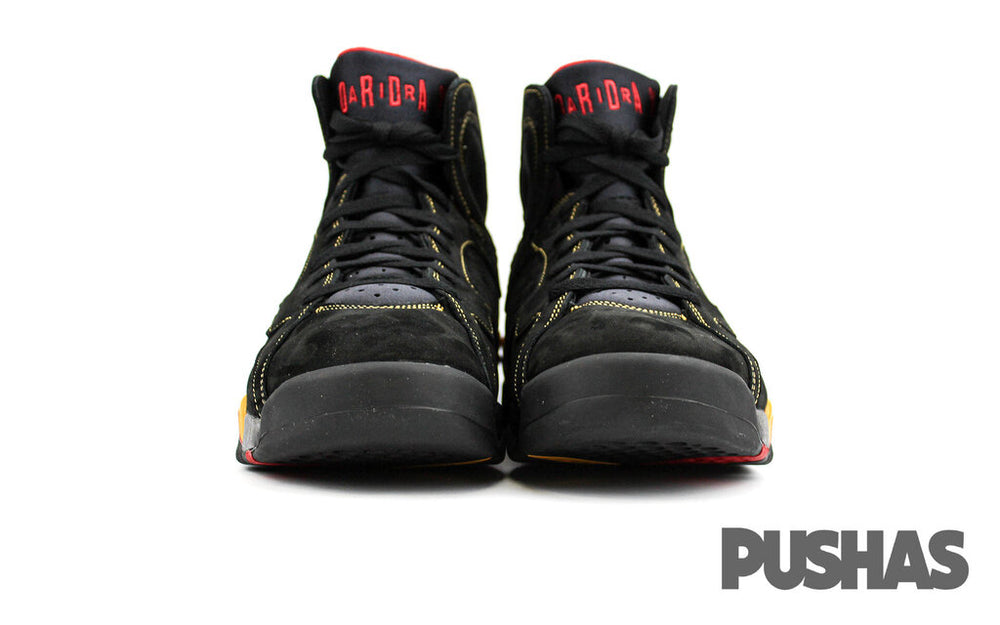 The Black Durabuck upper of the Air Jordan 7 Retro Citrus 2022 is accented with citrus and red on the sole. Along with that, it has orange threading all over the shoe and an orange Jumpman emblem on the outside of the upper ankle. The shoe has a "23" placed on a black and yellow background, as well as a little red strap behind the ankle. Released: August 2022