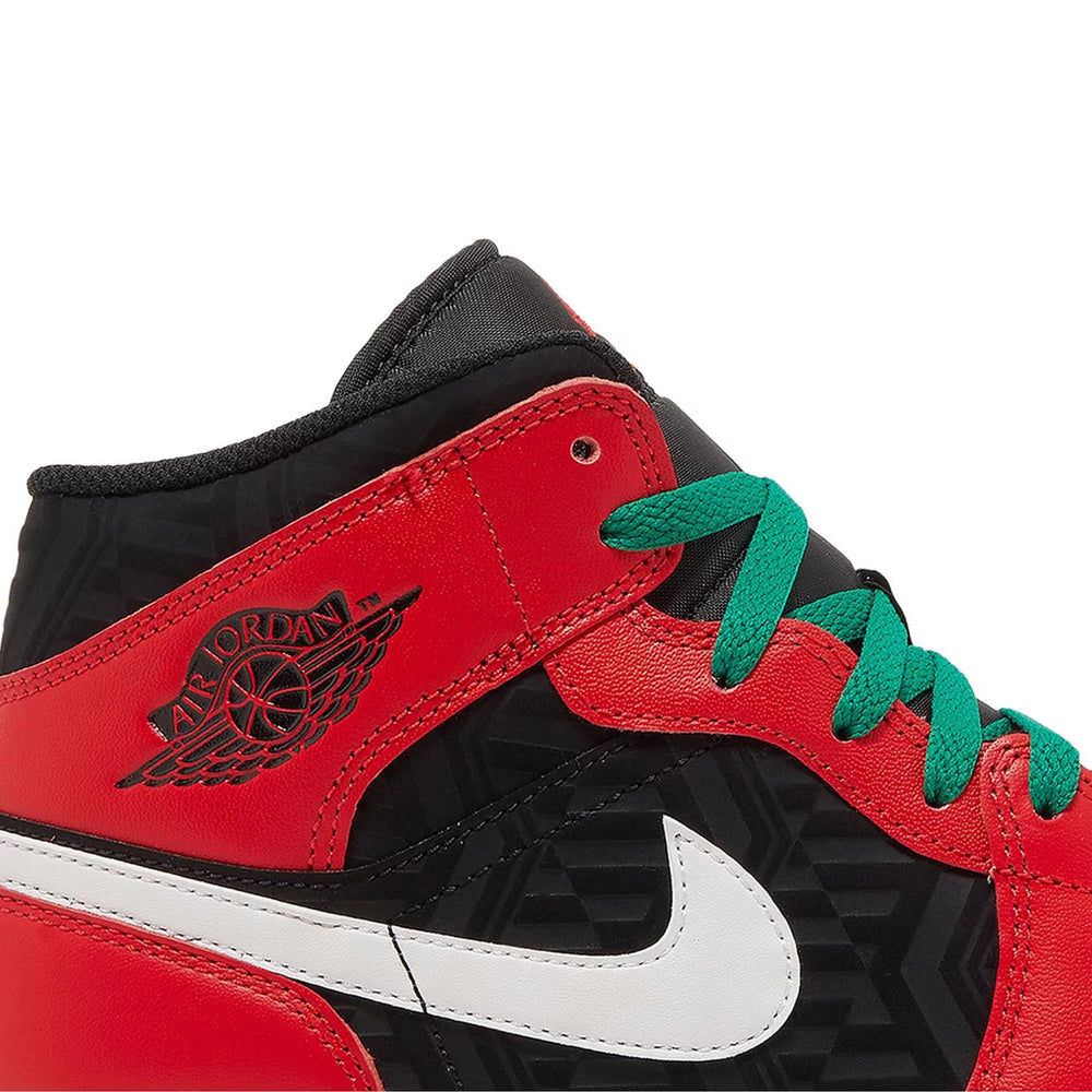 Iconic Air Jordan 1 Mid Silhouette: Retains the classic design of the Jordan 1 Mid but with a festive update, making it a standout choice for both collectors and holiday enthusiasts.