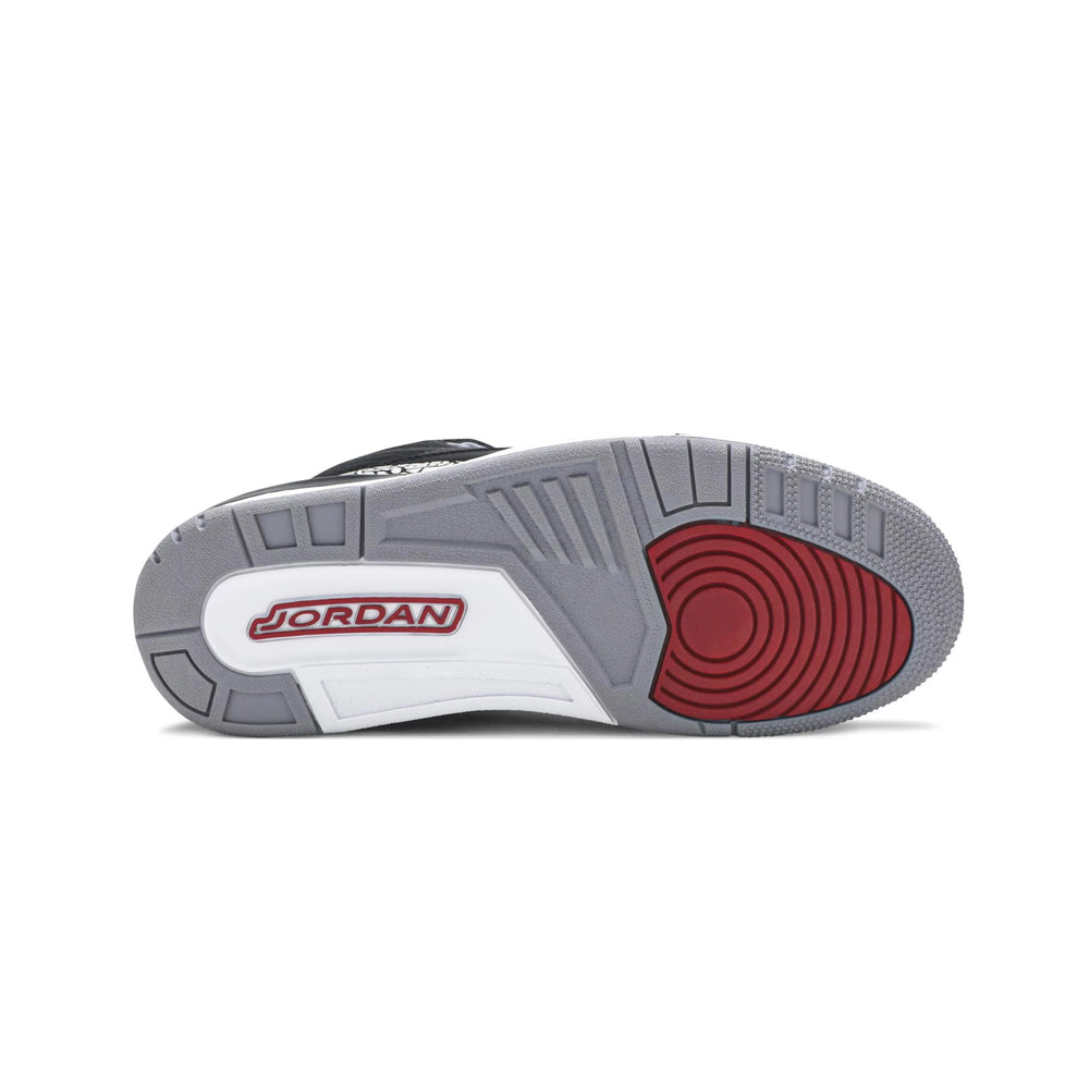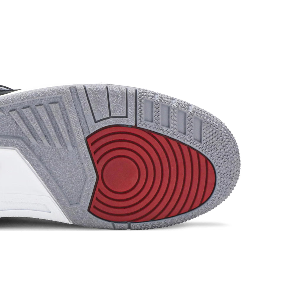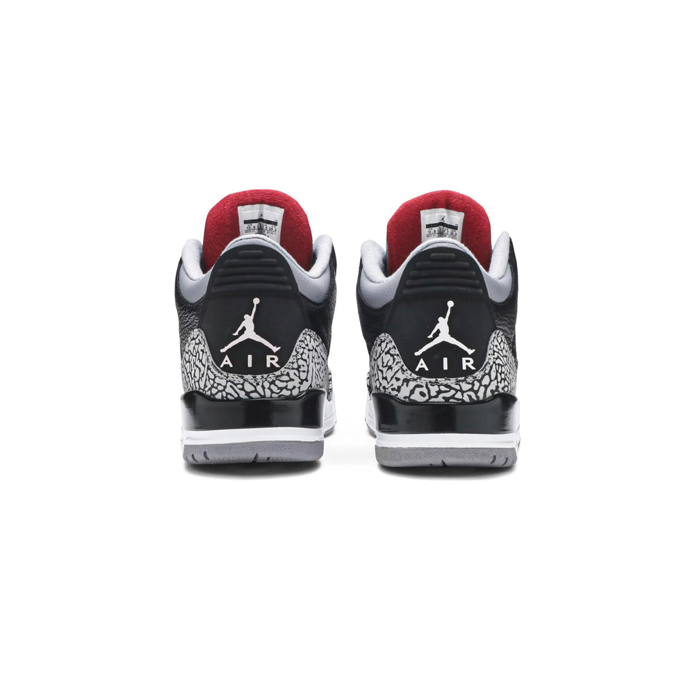 Crafted with a combination of premium black tumbled leather and signature elephant print overlays, the Air Jordan 3 Retro 'Black Cement' exudes a sophisticated yet bold look. The iconic Jumpman logo graces the tongue, while the "Nike Air" branding on the heel pays homage to the OG design, enhancing its nostalgic appeal. The shoe features a perforated leather collar and eyelets, contributing to its distinctive look and ensuring breathability. A polyurethane midsole houses the visible Air-Sole unit, offering exceptional cushioning and impact protection. The grey outsole with a circular traction pattern provides reliable grip, making it perfect for both on-court performance and streetwear fashion.