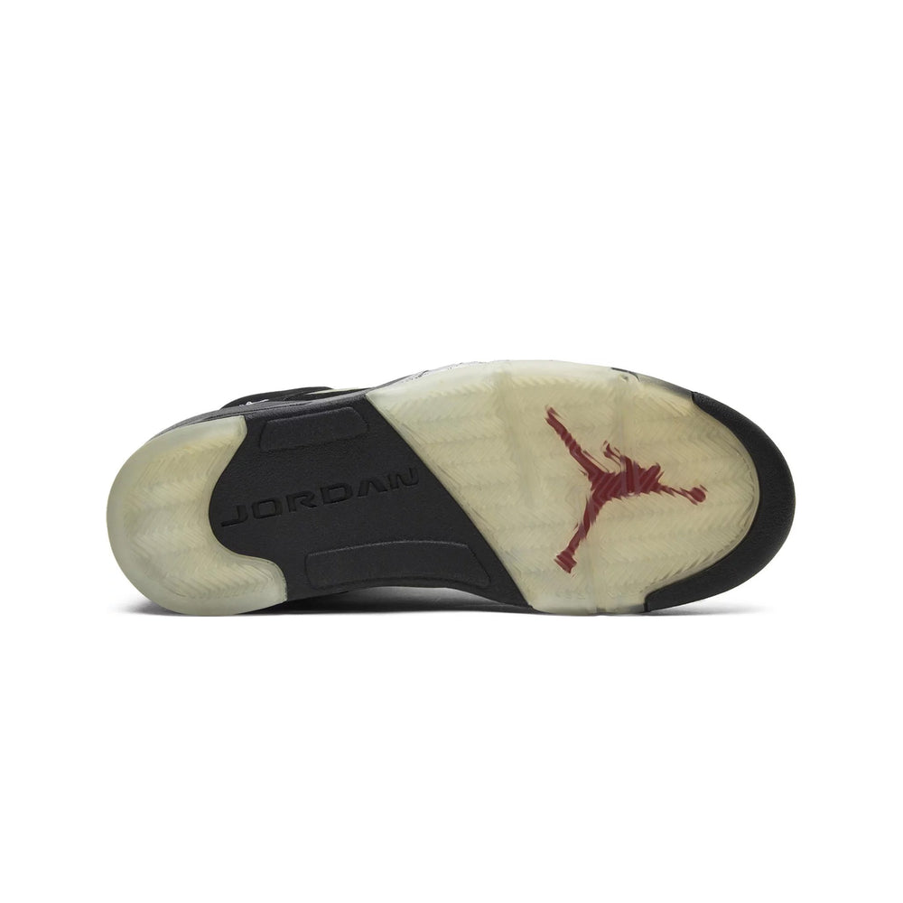 Beyond its aesthetic appeal, the Air Jordan 5 Retro 'Black Metallic' is engineered for performance. The sneaker incorporates a visible Air-Sole unit in the heel, delivering superior cushioning and comfort. This technology was groundbreaking at the time of its original release and remains a key feature that sets the Air Jordan 5 apart from its contemporaries.