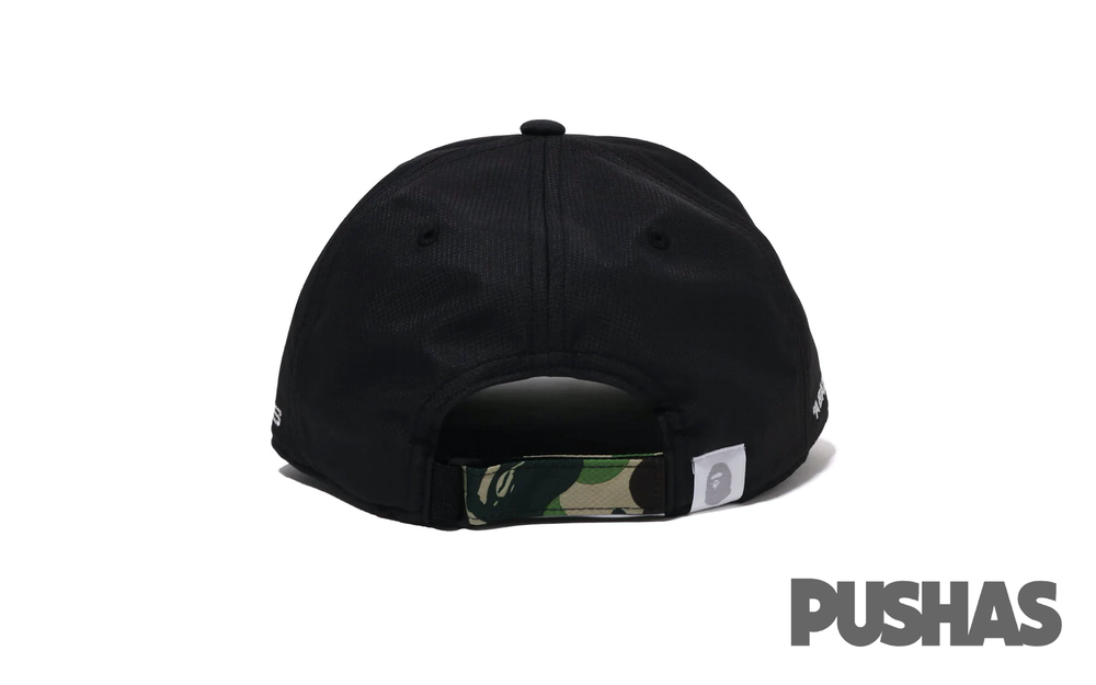 The Bape x Adidas Golf Cap features the iconic Bape camouflage pattern subtly integrated with Adidas' signature three-stripe logo, creating a bold yet understated aesthetic. The versatile black colorway ensures effortless coordination with any golf ensemble, while the breathable fabric and adjustable strap provide superior comfort and fit on the course.