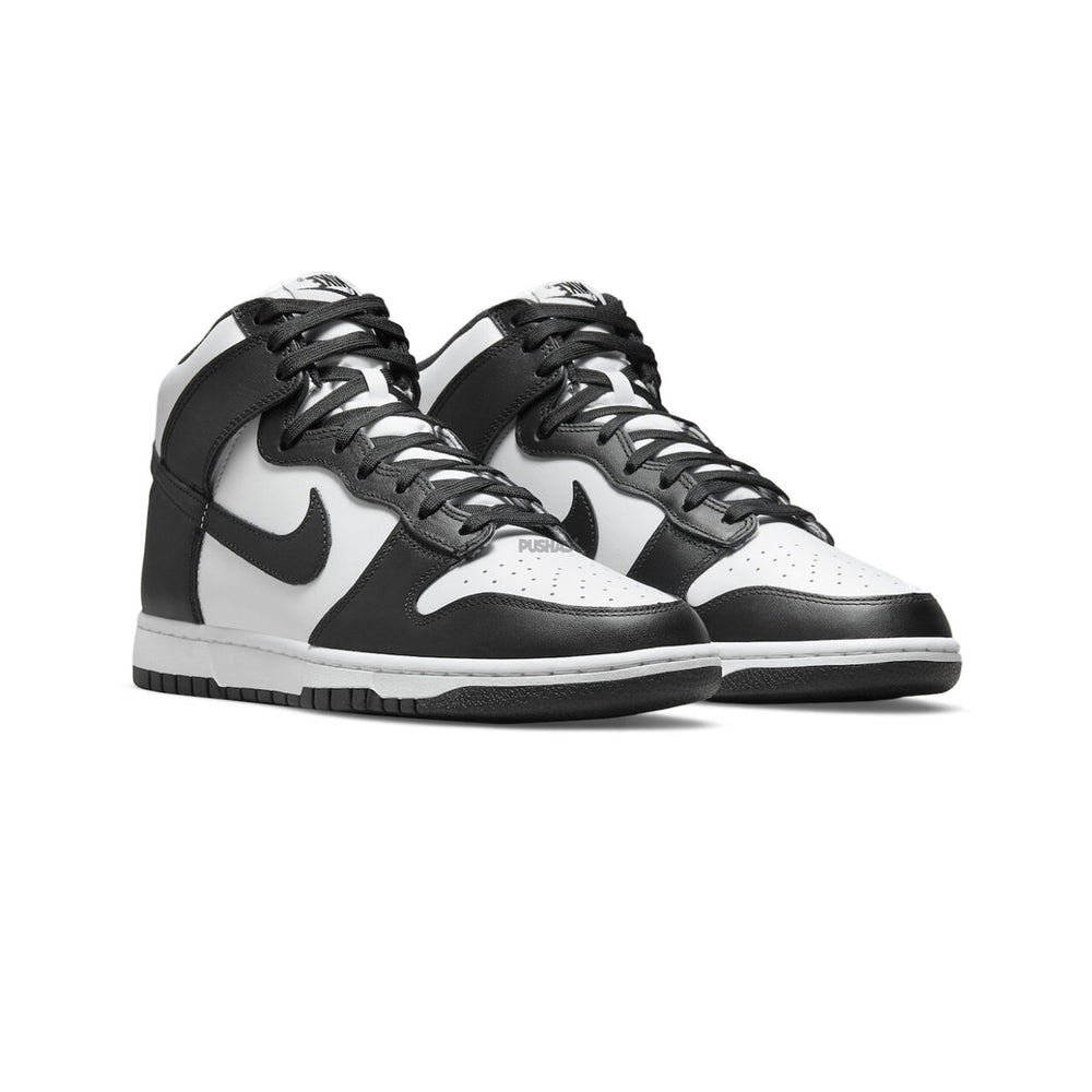 Crafted with premium materials, the Nike Dunk High 'Panda' showcases a combination of leather and suede overlays, ensuring durability and comfort. The classic Dunk silhouette is enhanced by the contrasting colors, making it a versatile choice for both casual and streetwear looks. The shoe's timeless appeal is further underscored by the iconic Nike Swoosh branding on the sides, representing the brand's heritage of athletic excellence.