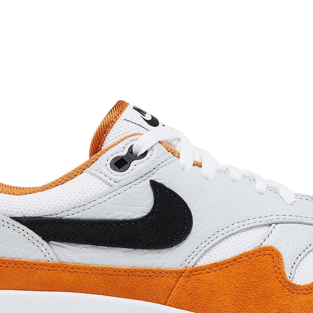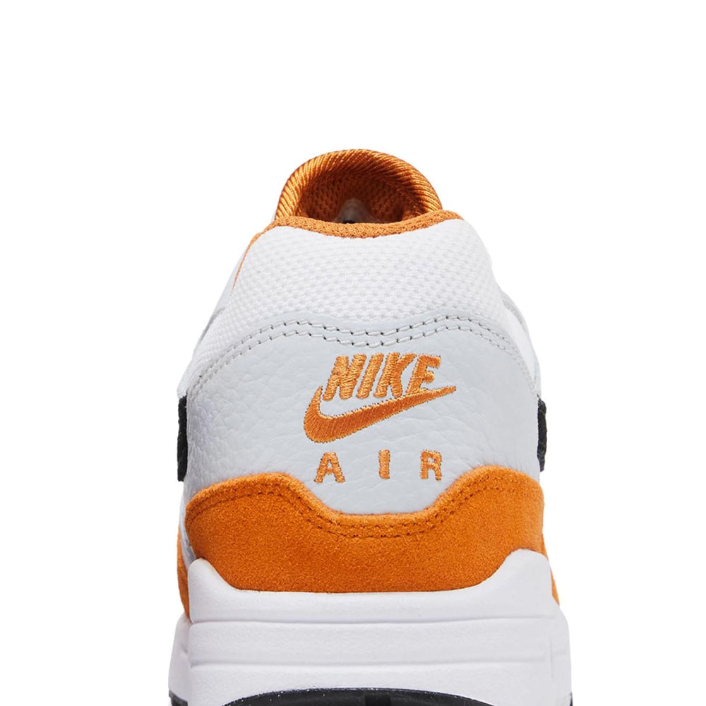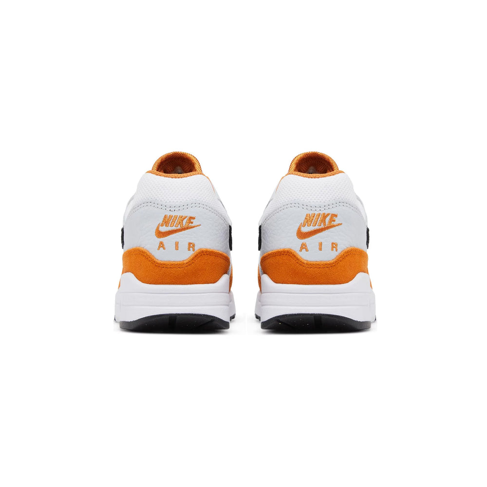 The Nike Air Max 1 'Monarch' features a premium combination of mesh, suede, and leather materials, with a "Monarch" orange hue dominating the upper. The shoe’s intricate detailing includes white mesh underlays, light grey suede overlays, and a matching white midsole, enhancing the contrast and providing a clean, polished look. A bold black Swoosh cuts through the side panels, adding a classic touch to the contemporary colorway. The visible Air unit in the sole ensures superior comfort, staying true to the Air Max’s heritage of cushioned performance. Released in 2024, this sneaker continues the legacy of Tinker Hatfield’s original design with modernized color palettes and updated materials, appealing to both collectors and casual wearers alike.