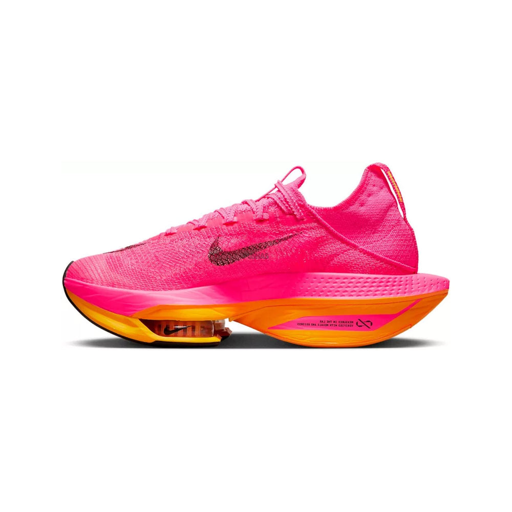 In summary, the Nike Air Zoom Alphafly Next% 2 'Hyper Pink Laser Orange' Women's edition is more than just a running shoe—it's a testament to Nike's commitment to innovation, performance, and style. With its groundbreaking technology, striking design, and tailored fit, it's no wonder why this shoe is a top choice for elite athletes and casual runners alike. Step into the future of running and experience the difference with the Alphafly Next% 2.