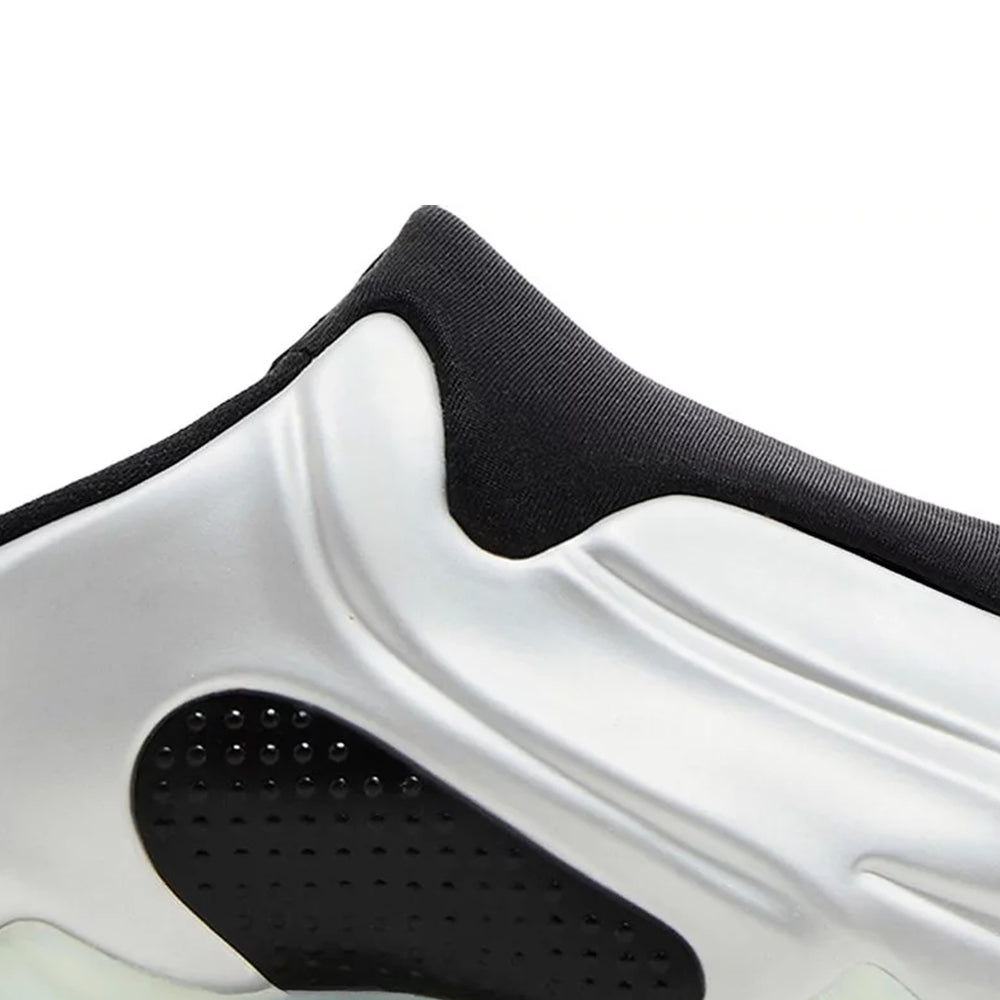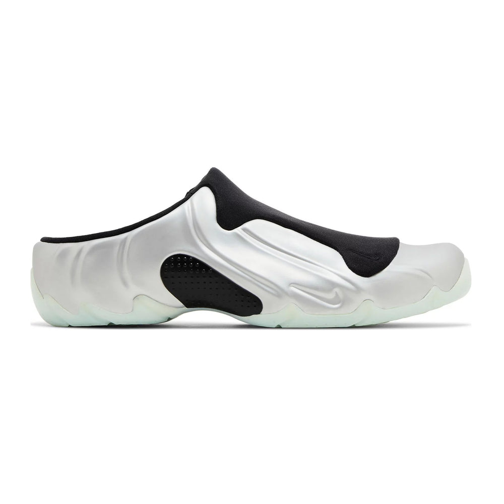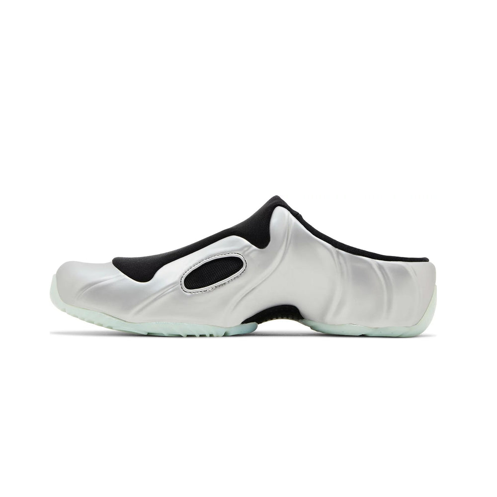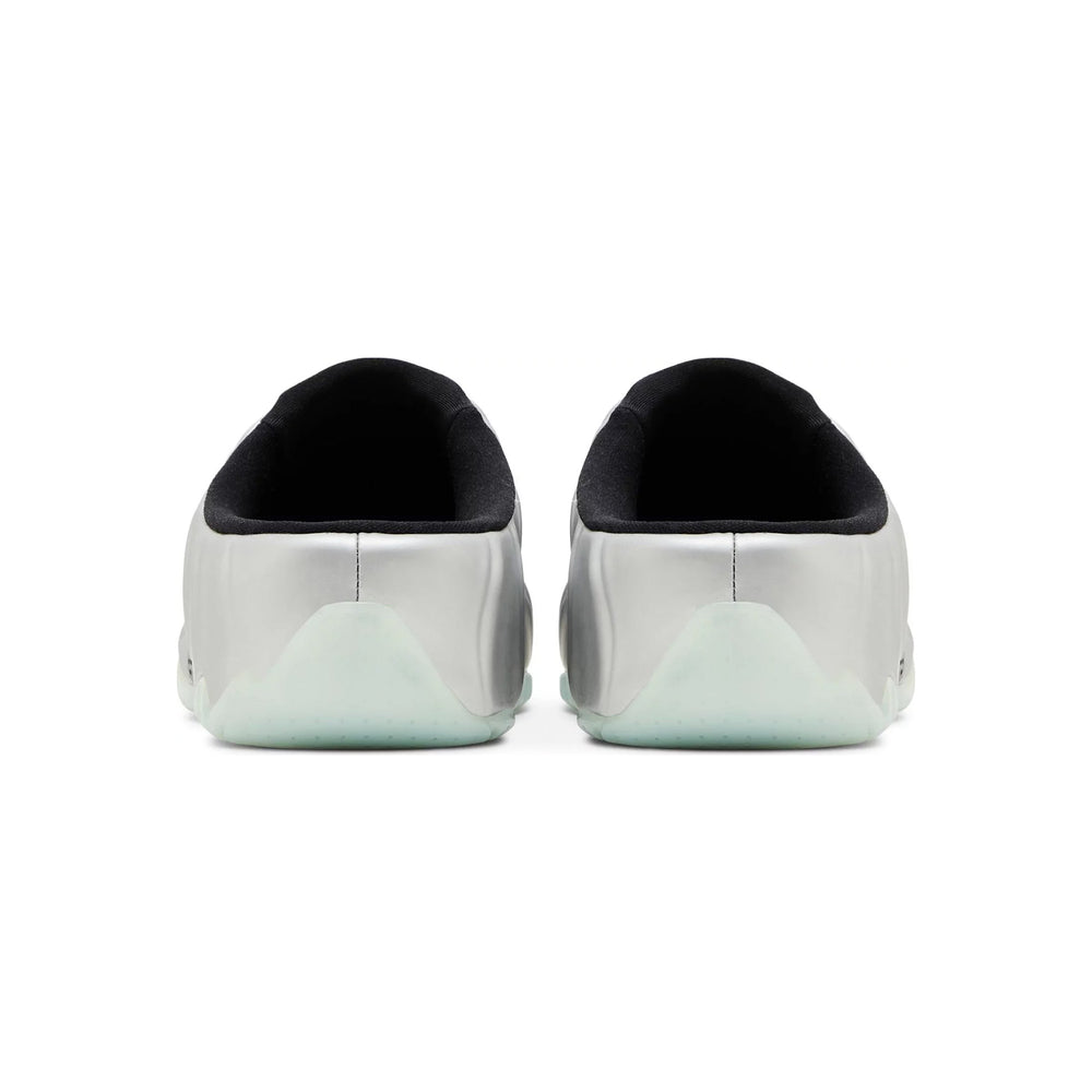 The Nike Clogposite 'Chrome' stands out with its reflective, metallic chrome upper that captures the essence of modernity and sleekness. This eye-catching exterior is complemented by a plush foam midsole, designed to offer superior cushioning and support. The shoe’s design includes a sculpted heel counter and a cushioned insole, enhancing overall comfort while maintaining a bold, high-impact look. Unique to this model is its seamless integration of Nike’s innovative Foamposite material, known for its durability and lightweight nature, providing both a futuristic appearance and practical performance benefits. The Clogposite 'Chrome' not only highlights Nike's commitment to pushing the boundaries of sneaker design but also celebrates the brand's ability to blend aesthetic appeal with functional prowess.