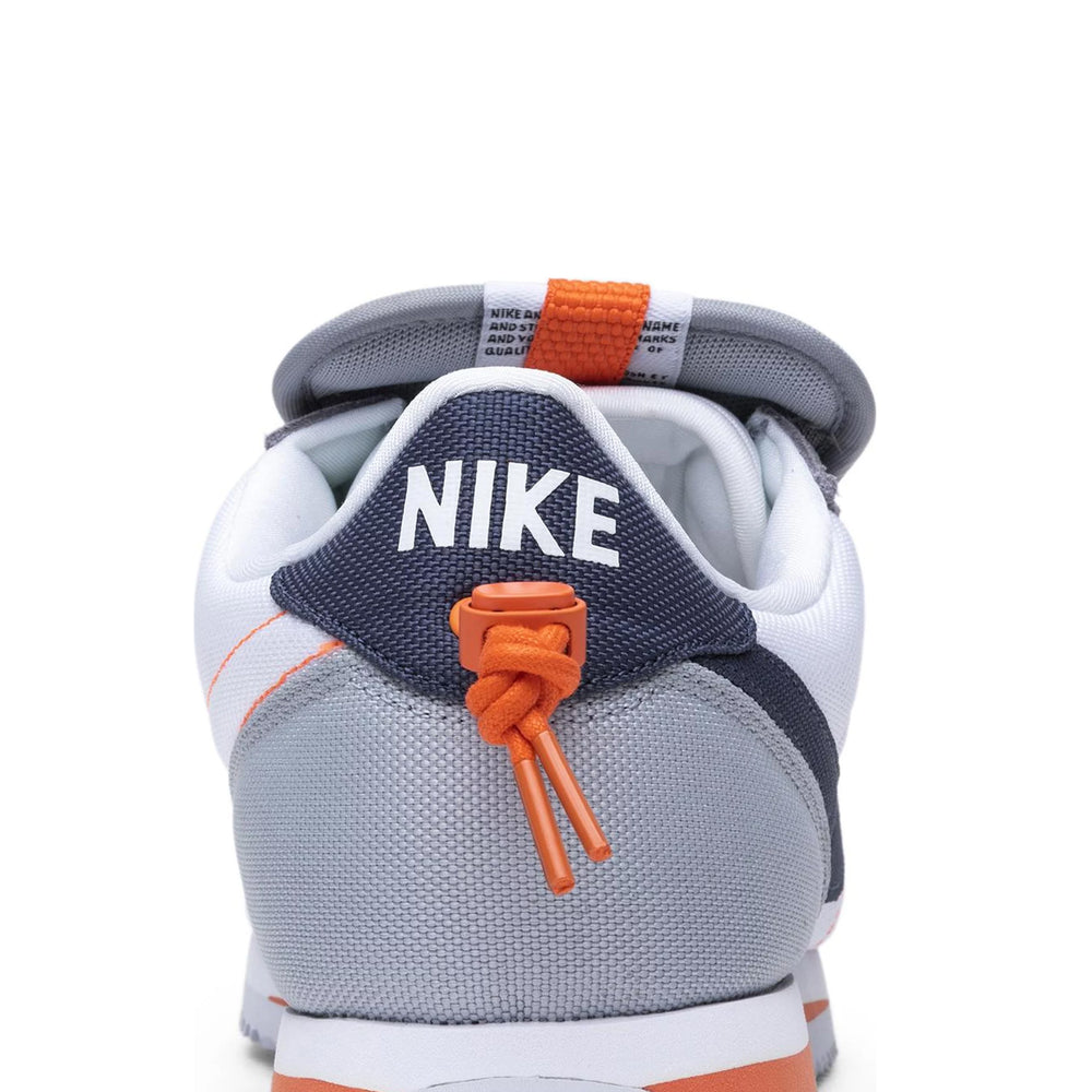 The Nike Cortez Basic Slip x Kendrick Lamar 'White' is constructed with a sleek, slip-on design that eliminates traditional laces in favor of a more streamlined and modern aesthetic. The upper features a pristine white leather base, accentuated by grey suede overlays that add a subtle contrast and texture to the overall design. A standout element is the unique toggle lacing system, which not only enhances the sneaker's functionality but also pays homage to Lamar's innovative approach to style. The branding is understated, with a small Swoosh on the lateral side and Kendrick Lamar's signature logo on the heel tab, emphasizing the collaborative nature of the design. The slip-on construction ensures ease of wear while maintaining the iconic Cortez silhouette, making it a versatile addition to any sneaker collection.
