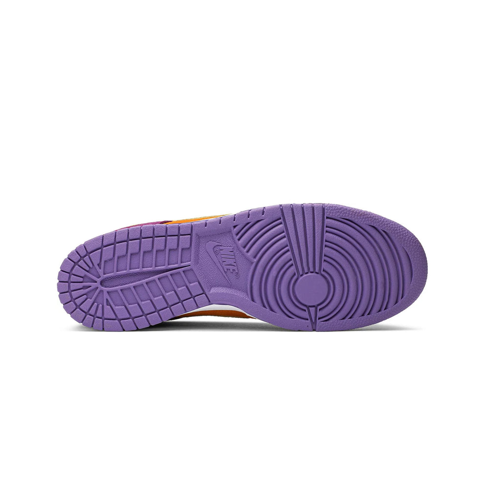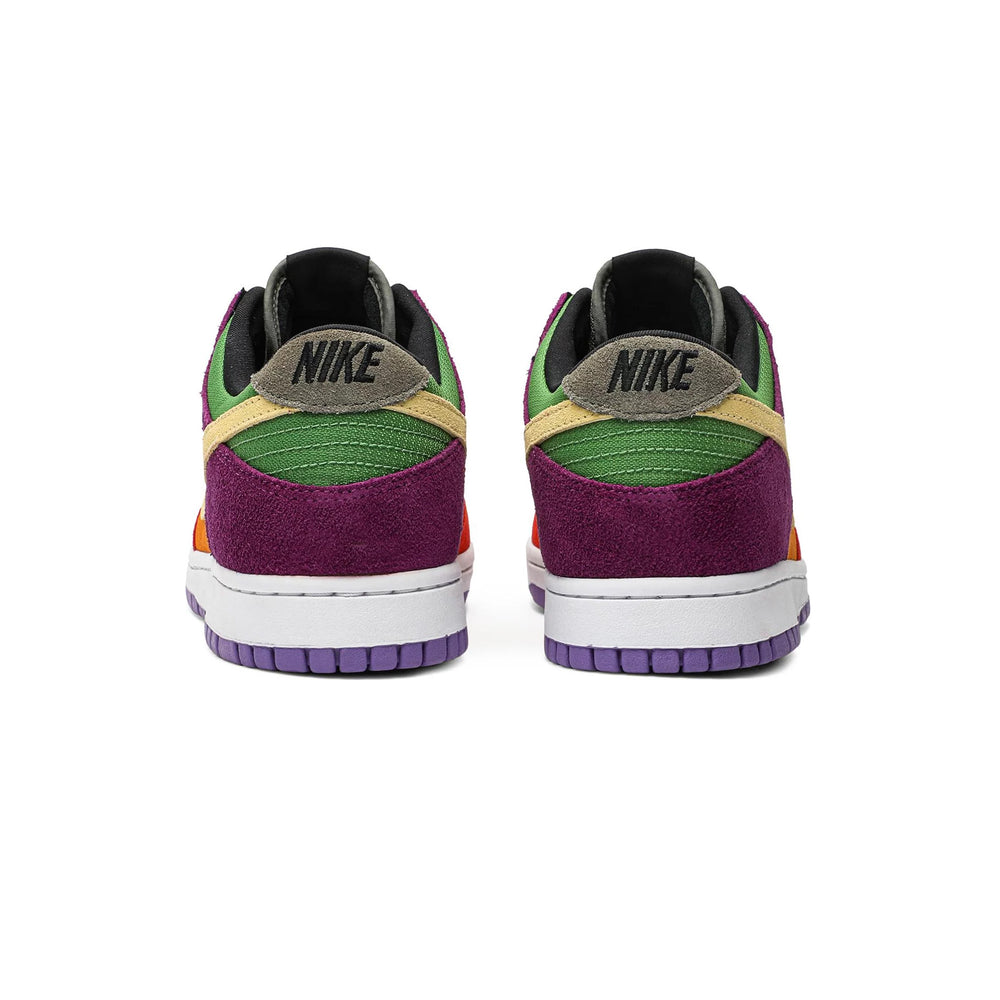 The Nike Dunk Low SP 'Viotech' showcases an eye-catching array of colors, featuring a rich combination of purple, red, orange, and blue suede overlays against a grey base. This eclectic mix creates a visually striking sneaker that stands out in any collection. The iconic Nike Swoosh appears in a vibrant yellow, contrasting beautifully with the varied hues of the upper. Additionally, the sneaker is finished with a white midsole and a violet rubber outsole, providing both comfort and durability. Key thematic elements, such as the use of premium suede materials and the nostalgic nod to the early 2000s streetwear scene, make this sneaker a must-have for collectors and fashion-forward individuals alike.