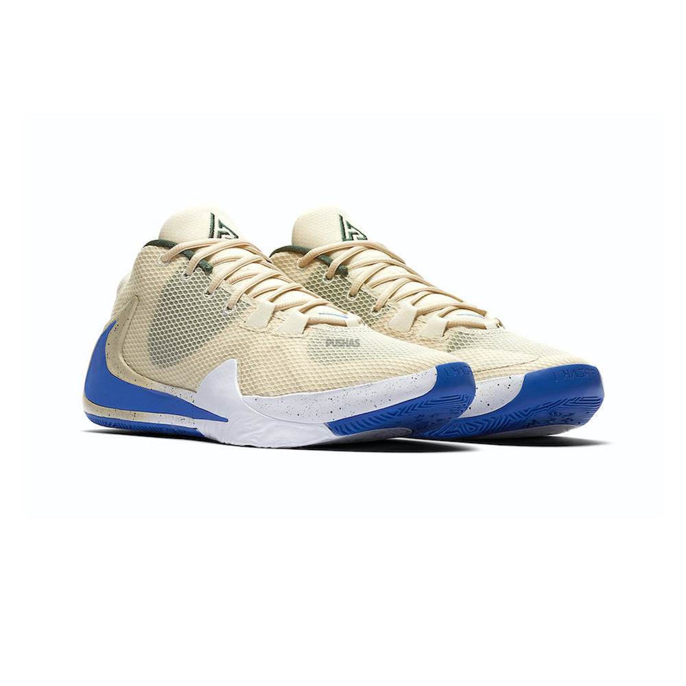 Not just a performance powerhouse, the Nike Zoom Freak 1 'Cream City' captivates with its aesthetic appeal. The cream-colored upper, accented with bold blue and yellow details, pays homage to Milwaukee's rich basketball heritage while adding a touch of elegance to your athletic ensemble. From the court to the streets, these sneakers are sure to turn heads and elevate your style game.