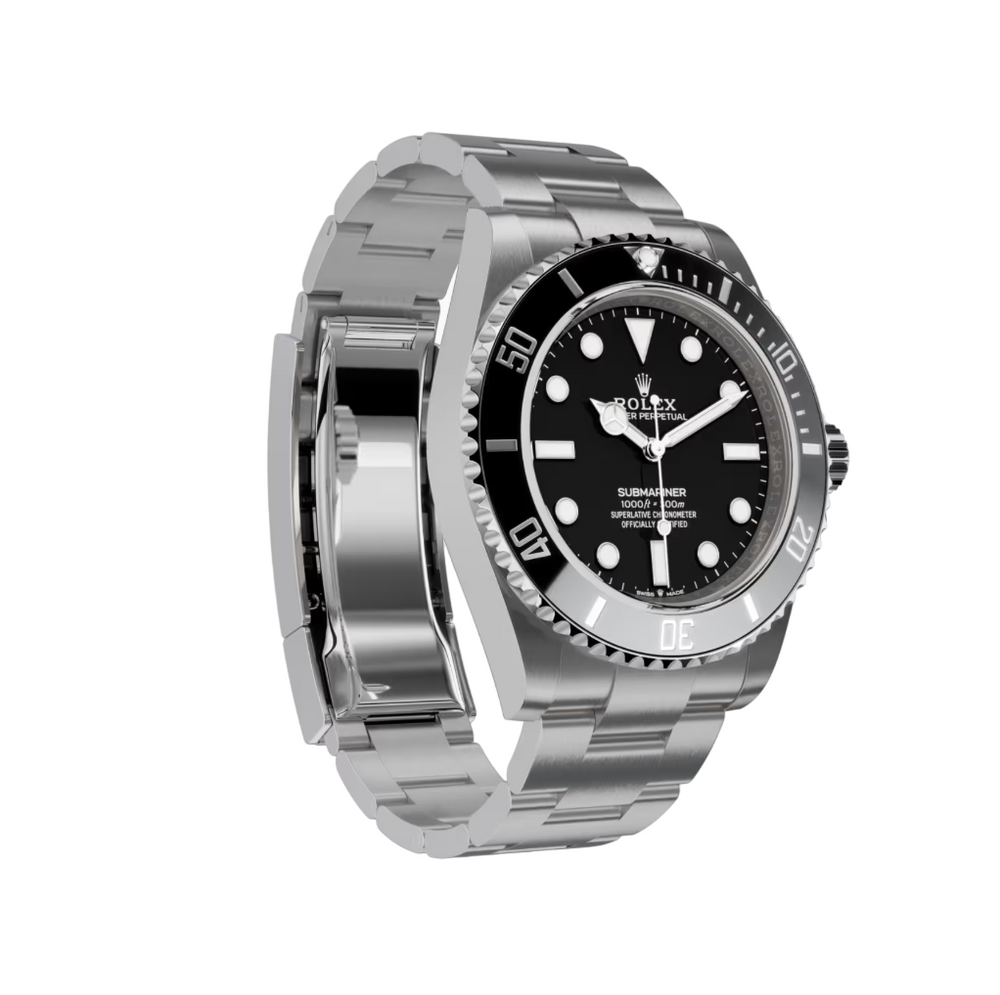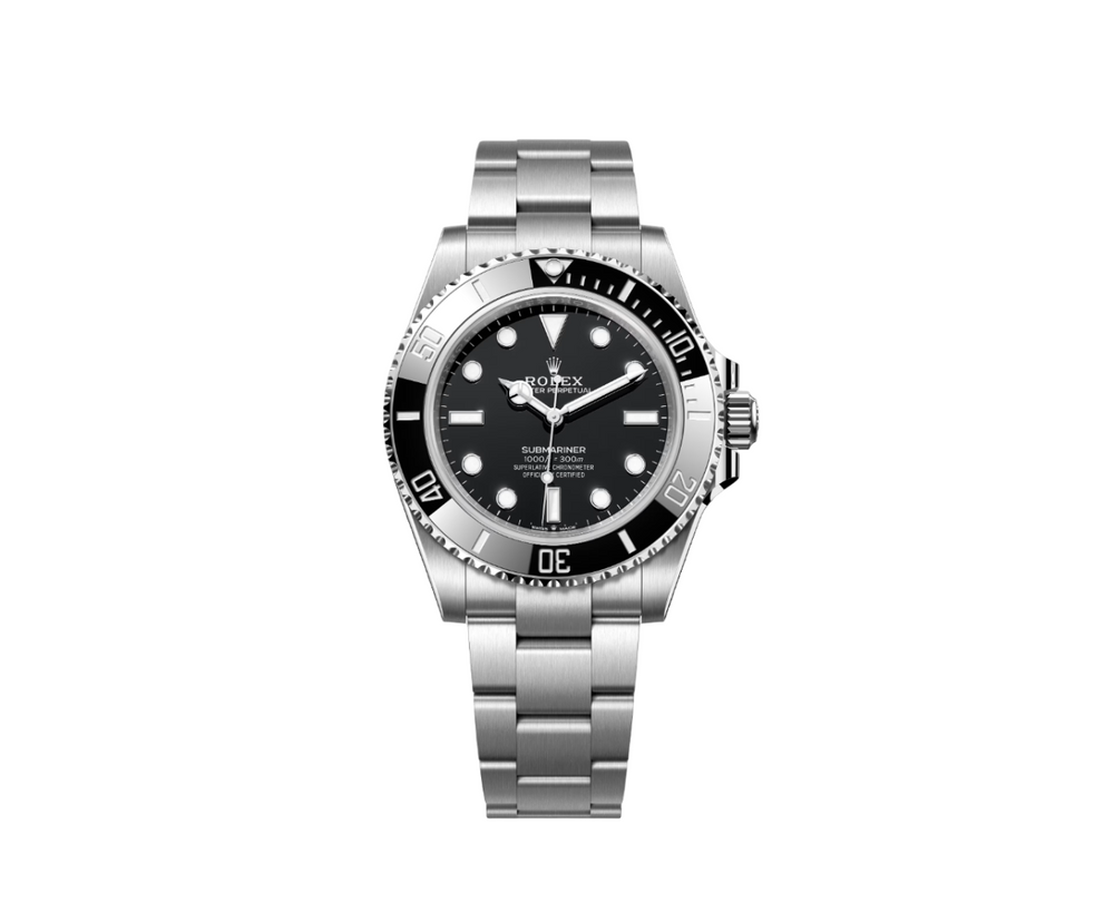Introducing the Rolex Submariner 41mm 'Oystersteel Black Dial' 124060, a contemporary incarnation of the classic Submariner, renowned for its unrivaled precision and durability since its inception in the 1950s. This model is a harmonious marriage of Rolex's iconic design and the demands of the deep. Constructed with Rolex's exclusive Oystersteel, known for its corrosion-resistant properties, the Submariner is as suited for the ocean's depths as it is for a corporate boardroom. The timepiece's sleek black dial is set within a 41mm case and is underscored by a Chromalight display for crystal-clear readability in the darkest environments. The Oyster bracelet, equipped with a secure Oysterlock clasp, promises steadfast durability and style. At the heart of the watch, an automatic movement keeps impeccable time, testament to Rolex's legacy of horological excellence. The 124060 is more than a watch; it's a legacy on your wrist, reflecting a tradition of adventure and the pursuit of perfection.
