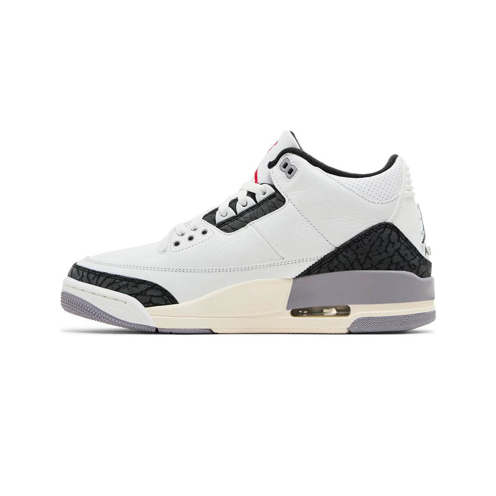 • Classic 'Cement Grey' Colorway: Features a versatile grey leather upper with contrasting black and white accents, staying true to the Air Jordan 3's heritage.