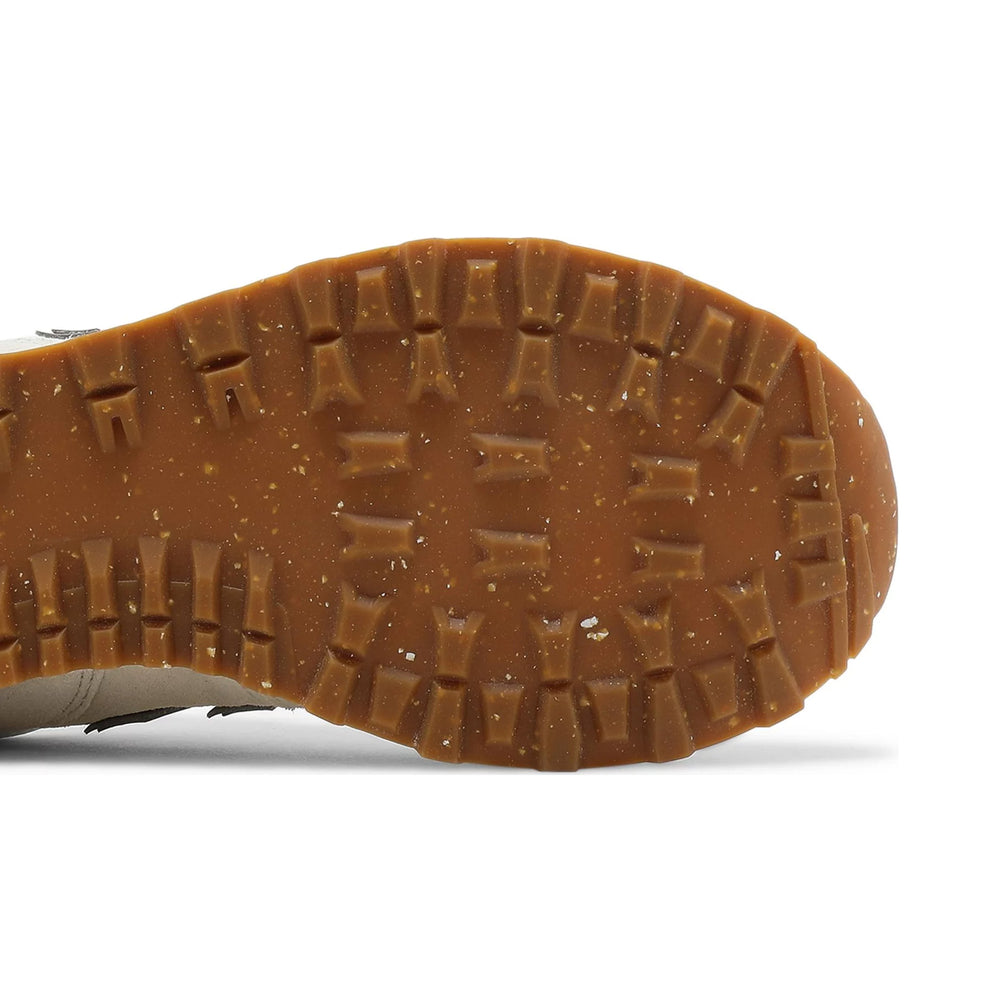 The New Balance 574 'Angora' features a combination of suede and mesh upper materials, providing a balanced mix of durability and breathability. The colorway is characterized by soft, neutral hues, with the angora tone dominating the design. Accents of grey and white complement the base, creating a subtle yet elegant contrast. The ENCAP midsole technology, a hallmark of the 574, ensures superior cushioning and support, making it ideal for all-day wear. The rubber outsole offers reliable traction, enhancing the shoe's functionality across various surfaces. This model also retains the signature "N" logo on the sides, reinforcing its place within New Balance's storied lineup.