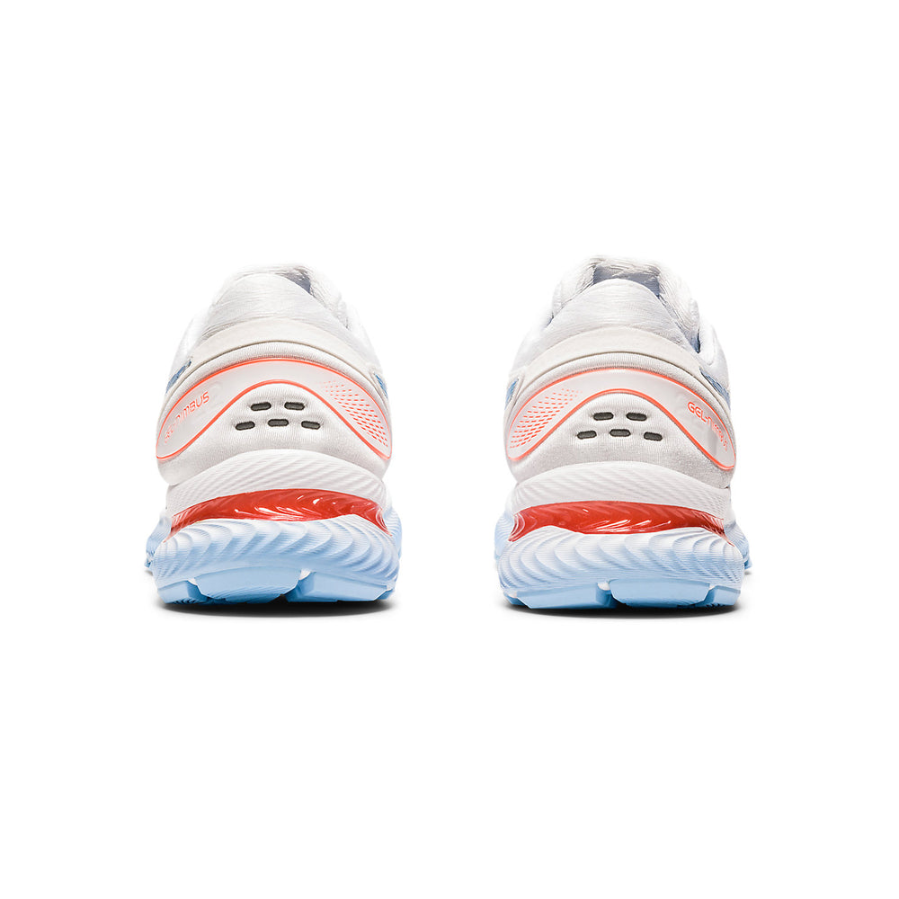 The ASICS Gel Nimbus 22 'White Blue Bliss' Women’s running shoes epitomize advanced performance technology and sleek design, delivering exceptional comfort and support for runners. This latest iteration in the Gel Nimbus series combines innovative features with an elegant aesthetic, perfect for both serious athletes and casual runners alike.