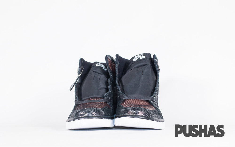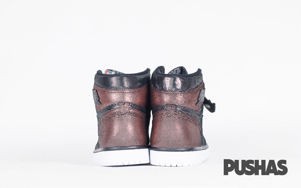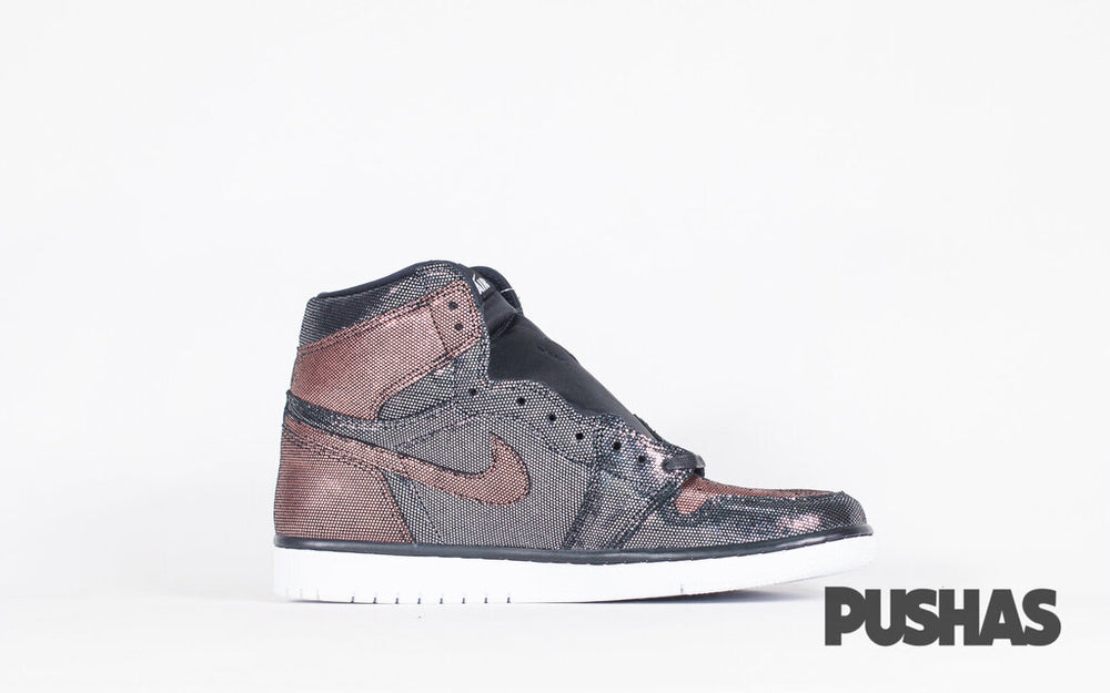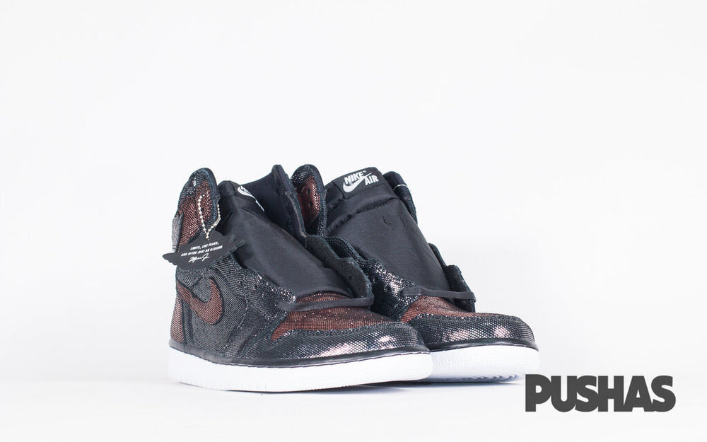 The classic high-top style has been given a distinctive makeover for the Women's Air Jordan 1 "Fearless." The upper of the "Fearless" Air Jordan 1 release gladly takes inspiration from the "SP Gina" model, applying a similar metallic mesh finish to the former while switching out the colour blocking present on many original Air Jordan 1s. The mid-panel, eyelets, toe cap, and ankle collar are all made of a black mesh material, while the lateral panel, ankle collar, and perforated toe are made of a contrast rose gold mesh. The upper has a distinctive look thanks to the rose gold Swoosh on the mid-panel and the solid black Wings emblem on the collar.