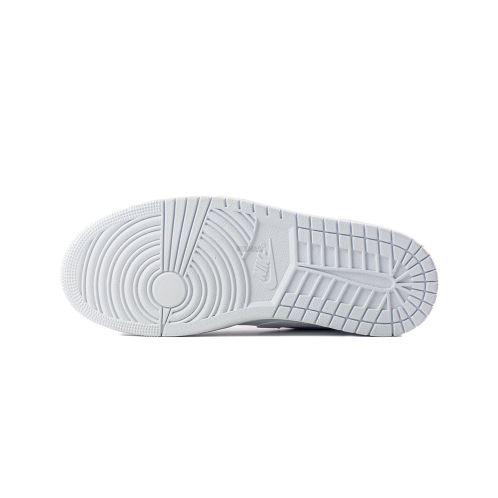 A monochromatic colorway of the Air Jordan 1 Low Triple White 2022 is featured on the design.