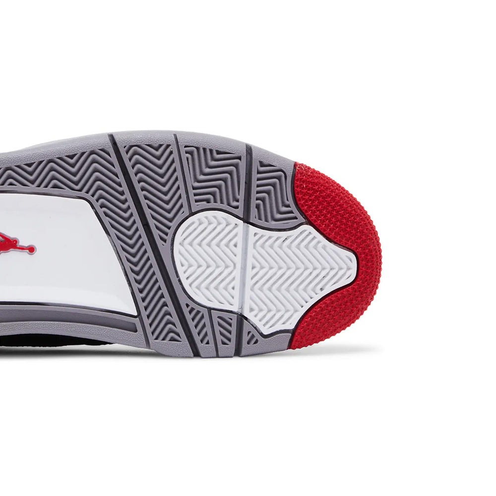 The Air Jordan 4 Retro 'Black Cement' (2012) reintroduces one of the most iconic colorways in sneaker history, blending timeless design with unmatched craftsmanship. This celebrated release pays homage to Tinker Hatfield's original 1989 creation while solidifying its place as a staple in the Air Jordan lineup. Overview Crafted with a premium black nubuck upper, the Air Jordan 4 Retro 'Black Cement' (2012) exudes understated elegance and durability. The sneaker features cement grey accents on the signature wing eyelets and midsole, complemented by bold splashes of "Fire Red" on the tongue, outsole, and inner lining. The unmistakable "Jumpman" logo takes center stage on the tongue and heel, replacing the original "Nike Air" branding. A visible Air unit in the heel ensures modern comfort while retaining the silhouette's retro aesthetic. Perfectly balancing style and performance, this iteration of the Air Jordan 4 remains a grail for collectors and basketball enthusiasts alike. Key Highlights • Timeless 'Black Cement' Colorway: Features a sleek black nubuck upper contrasted by cement grey and fiery red accents, staying true to the OG design. • Durable and Comfortable Construction: Premium materials and a visible Air unit deliver both longevity and all-day wearability. • Iconic Air Jordan 4 Silhouette: Designed by Tinker Hatfield, this retro release preserves the heritage of one of the most beloved Air Jordans of all time.