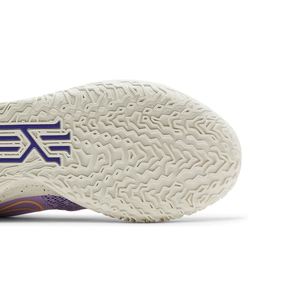 When developing hues of its trademark sneakers for its athletes, Nike Basketball has a multitude of inspirations to choose from, but few are as close-knit as the upcoming "Daughters" pack. Soon, a collection of signature models will be released that were inspired by the athletes' daughters and proudly represent the #GirlDad movement via their charming and sincere creations. This Nike Kyrie 7 was created for KAI's daughter Azurie; it features a delicate purple, pink, and brilliant orange hue and features a "AZ" on the heel along with a charming flower artwork. The outside eyelets at the forefoot and the mesh overlay on the upper both feature the same flowery motif.