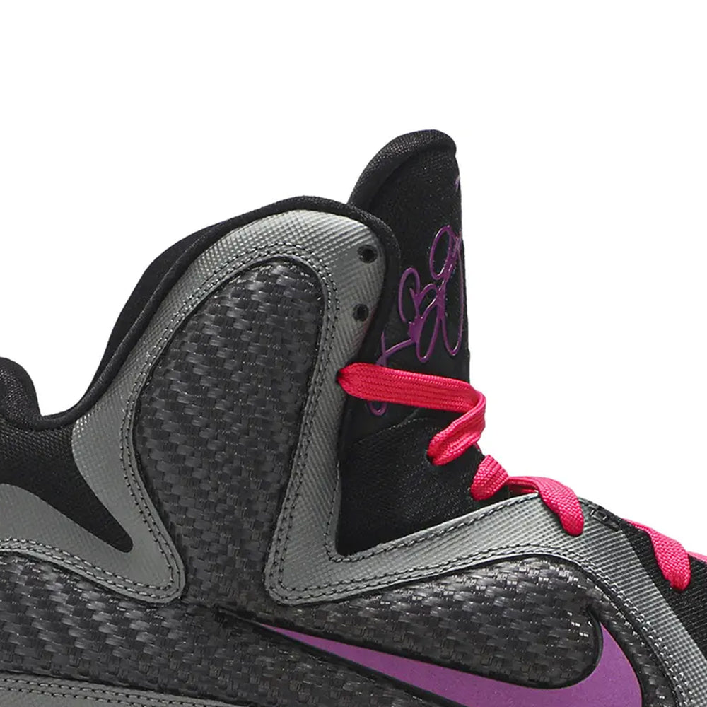 The Nike LeBron 9 'Miami Nights' (2011) stands as a bold statement in LeBron James' signature sneaker lineage, capturing the electric energy of Miami’s nightlife. This vibrant iteration of the LeBron 9 blends performance-driven innovation with a striking color palette, making it a sought-after release among collectors and basketball enthusiasts alike. Overview Dressed in a dynamic mix of "Black," "Metallic Silver," and "Cherry," the Nike LeBron 9 'Miami Nights' delivers a visually striking aesthetic. The sneaker features a breathable Hyperfuse upper with Flywire technology for enhanced support and durability, while the speckled midsole and contrasting red accents echo the pulsating neon lights of Miami. A full-length Max Air unit and Zoom Air cushioning ensure premium comfort, making this sneaker a performance powerhouse both on and off the court. The carbon fiber shank plate further enhances stability, solidifying its place as one of the most technologically advanced models in the LeBron lineup. Key Highlights • Vibrant 'Miami Nights' Theme: A bold combination of "Black," "Metallic Silver," and "Cherry" reflects the high-energy atmosphere of Miami’s nightlife. • High-Performance Cushioning: Equipped with a full-length Max Air unit and Zoom Air in the forefoot for optimal responsiveness and impact protection. • Innovative Upper Construction: Hyperfuse material with Flywire technology provides lightweight breathability and superior lockdown support.