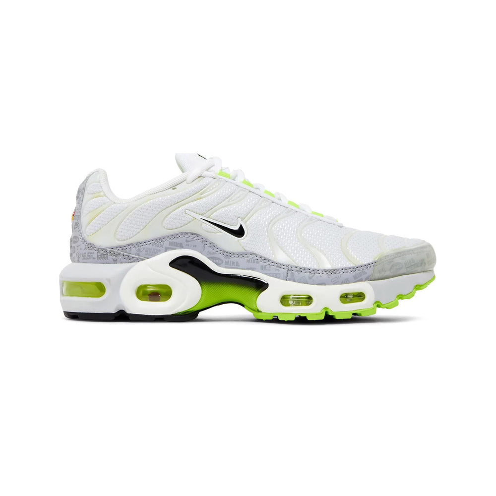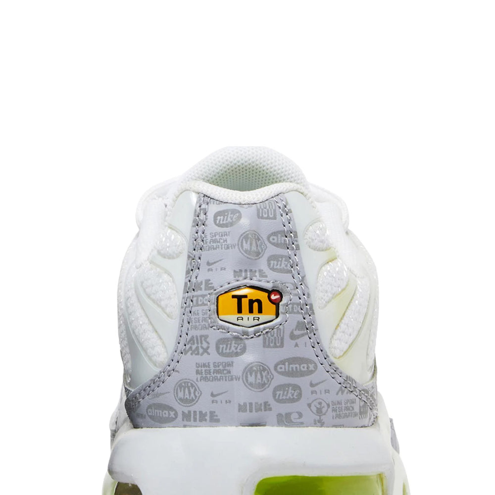 Shop the Refurbished Air Max Plus TN 'Retro Air Max Logos / Reflective White Volt' GS (2021).