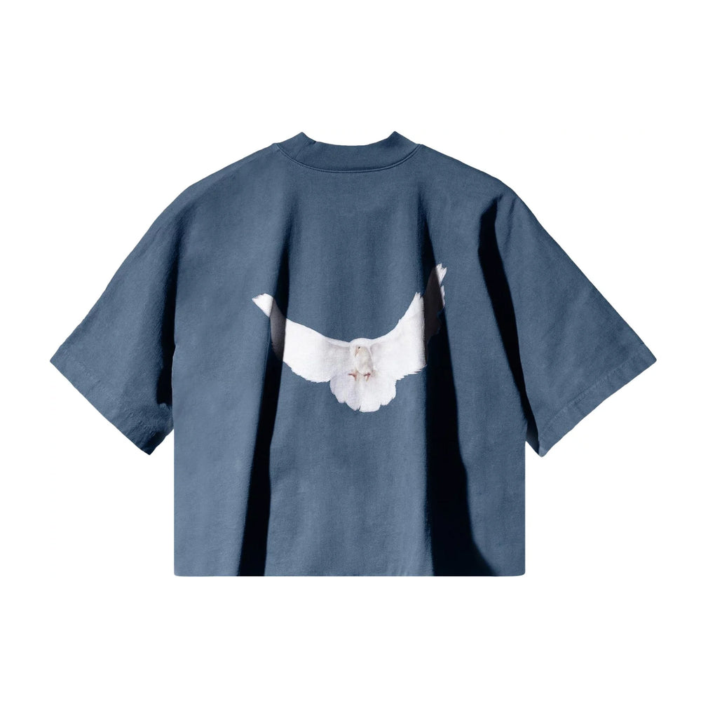 Crafted from premium cotton, the 'Dark Blue' Dove No Seam Tee redefines simplicity with its seamless construction, offering a clean, uninterrupted design that eliminates traditional stitching. The rich, deep blue tone adds a sophisticated touch, making it versatile for both casual and elevated looks. The iconic Dove logo, a subtle yet powerful emblem of Yeezy's aesthetic, is screen-printed on the back, providing an understated branding detail. The oversized fit, a hallmark of Balenciaga's influence, ensures a relaxed and contemporary silhouette, while the absence of visible seams enhances the overall sleekness of the design.