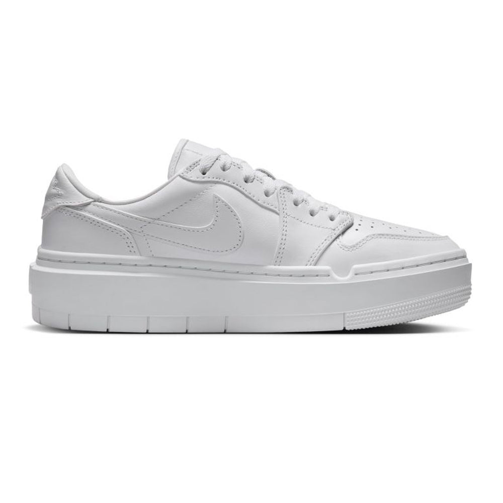 Crafted from premium leather, the Air Jordan 1 Elevate Low 'Triple White' features a monochromatic design that enhances its sleek profile. The smooth leather upper, combined with subtle stitching and minimal branding, allows the silhouette to shine without distractions. A standout feature of this model is its platform sole, which provides added height and a contemporary edge while maintaining the comfort and support that the Air Jordan line is known for. The sneaker also includes a padded collar for enhanced ankle support and a cushioned insole that ensures all-day comfort. The signature Air cushioning is embedded in the sole, offering the perfect blend of style and performance.
