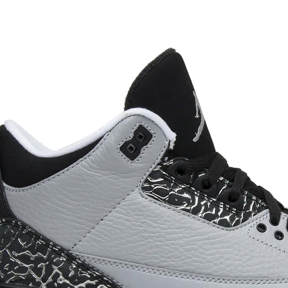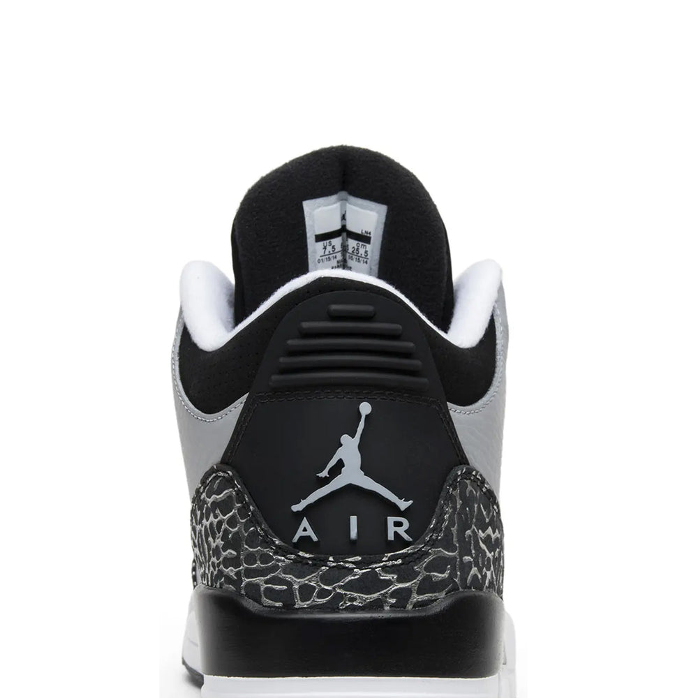 The Air Jordan 3 Retro 'Wolf Grey' (2014) brings a refined and versatile aesthetic to the iconic Jordan Brand lineup, merging premium materials with timeless design. This sleek iteration of the Air Jordan 3 silhouette combines subtle luxury with performance-ready features, making it a standout for both collectors and casual wearers alike. Overview The Air Jordan 3 Retro 'Wolf Grey' boasts a "Wolf Grey" leather upper that exudes understated elegance. The premium leather is complemented by metallic silver elephant print overlays on the toe box and heel, a unique twist on the classic textured detail. Black accents highlight the tongue, collar, and midsole, adding contrast to the monochromatic design. Pops of metallic silver appear on the Jumpman logos, while the white midsole and grey outsole provide a clean finish. Balancing heritage with modern appeal, this release honors the Jordan legacy with a fresh perspective. Key Highlights • Premium 'Wolf Grey' Leather Upper: Offers a sophisticated look while ensuring durability and comfort for everyday wear. • Metallic Silver Elephant Print Overlays: Adds a contemporary flair to the classic Jordan 3 design, elevating its aesthetic appeal. • Iconic Air Jordan 3 Silhouette: Features classic mid-top construction with visible Air cushioning for all-day comfort and performance.