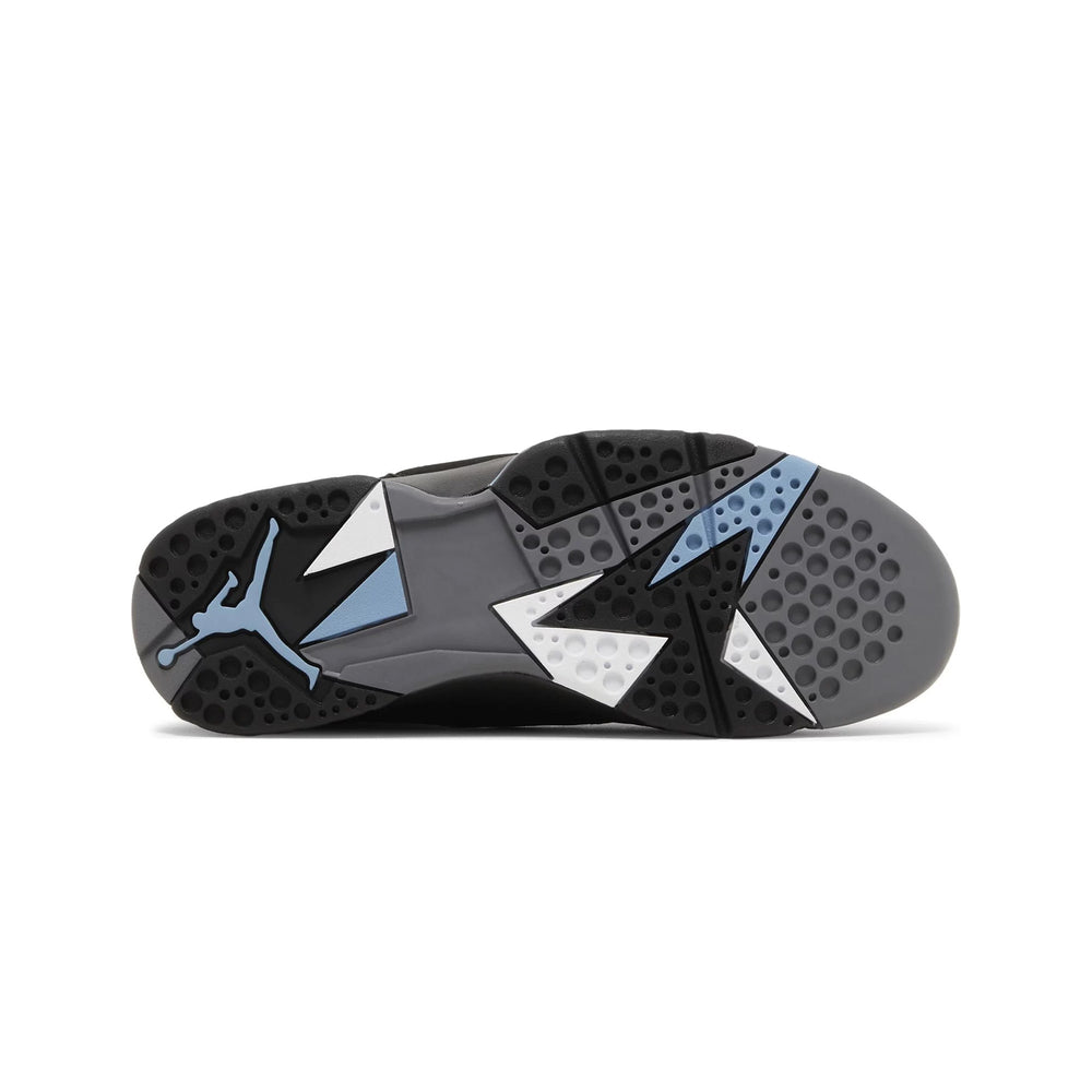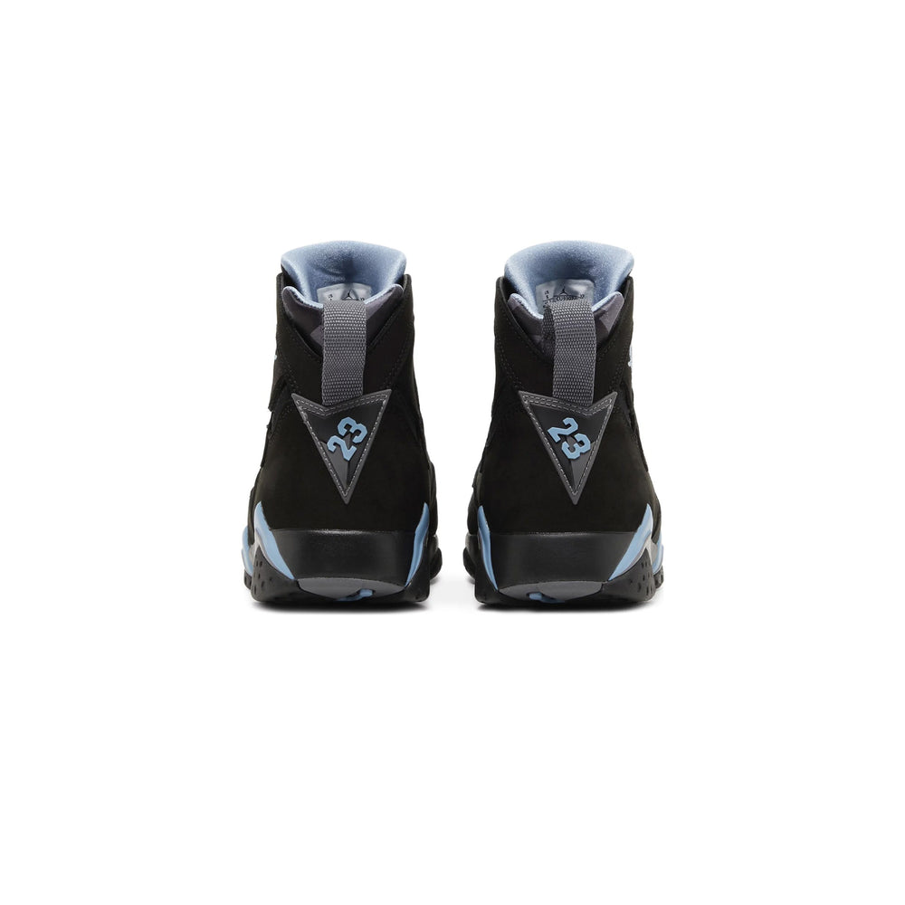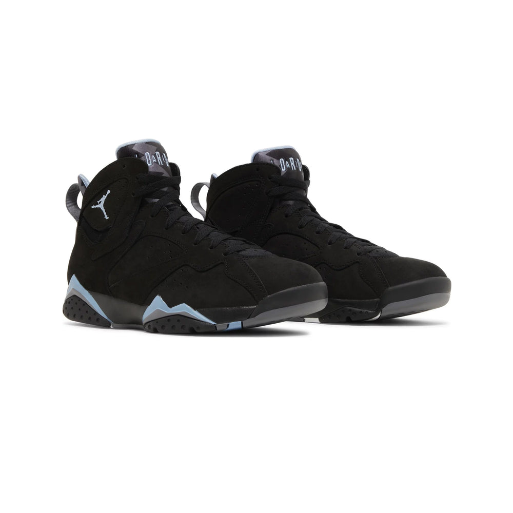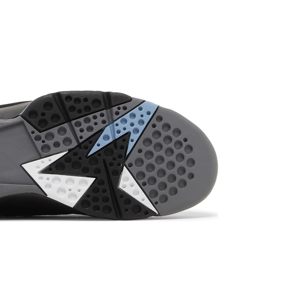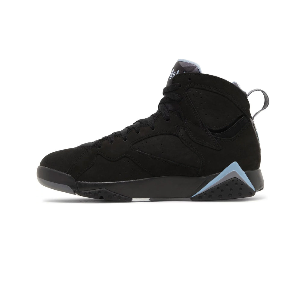 The 'Chambray' edition features a clean, sophisticated look with a predominantly navy suede upper, complemented by vibrant accents of chambray blue and subtle hits of grey. The shoe's color palette is meticulously designed to evoke a sense of understated elegance, seamlessly blending classic and modern aesthetics. The high-quality suede upper is paired with a black midsole and a crisp white outsole, ensuring both style and durability. The signature Air Jordan 7 silhouette is enhanced with a reflective silver detailing on the tongue and heel, providing a touch of contemporary sophistication. This retro release is finished with a cushioned collar and a perforated toe box, enhancing both comfort and breathability.
