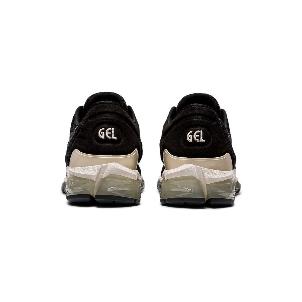 The ASICS Gel Quantum 360 5 Knit 'Black Cozy Pink' features a dynamic, all-black knit upper that ensures breathability and flexibility, adapting effortlessly to the foot’s movements. The shoe’s standout feature is its 360-degree GEL® technology, which provides superior cushioning and shock absorption from heel to toe, making each step remarkably smooth. The 'Cozy Pink' accents on the heel and midsole inject a touch of vibrant contrast against the predominantly black design, enhancing the shoe’s visual appeal. The knit upper is not only stylish but also engineered to offer a snug, sock-like fit, while the reinforced heel counter and internal support structures ensure stability and durability.